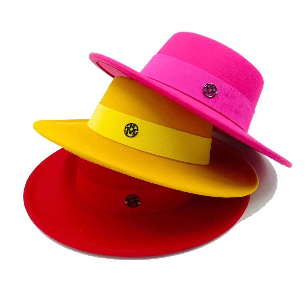 فيدورا الخريف والشتاء قبعة إكسسوارات الحروف الفرنسية الرجعية فاسق الرجال والنساء واسعة حافة قبعة gorras القبعات للرجل