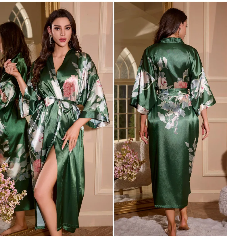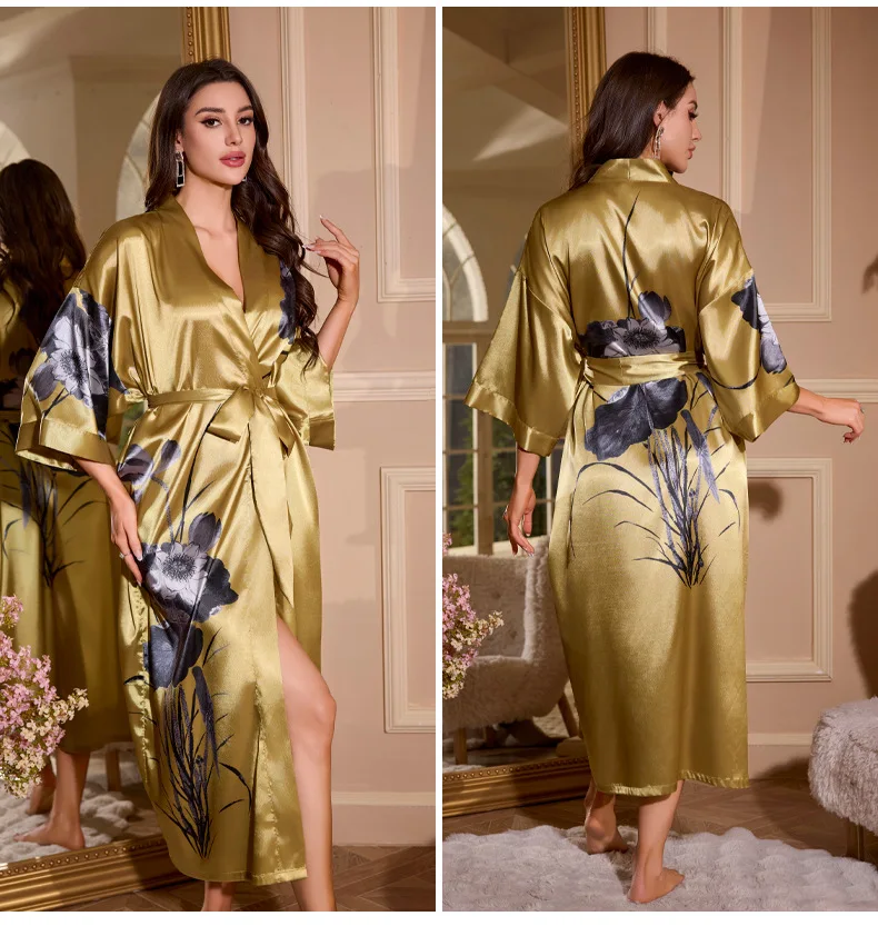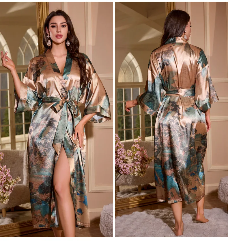 جديد النمط الصيني رداء طويل كيمونو البشكير ثوب المرأة ملابس خاصة طباعة زهرة فستان المنزل ثوب النوم فضفاض