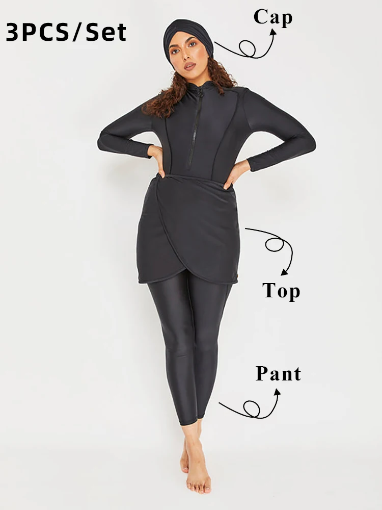 جديد بوركيني نساء ملابس سباحة إسلامية حجاب متواضع كم طويل ملابس سباحة رياضية بدلة استحمام إسلامية ، تجفيف سريع ، UPF50 +