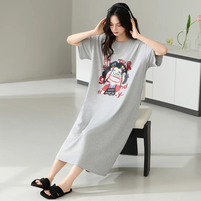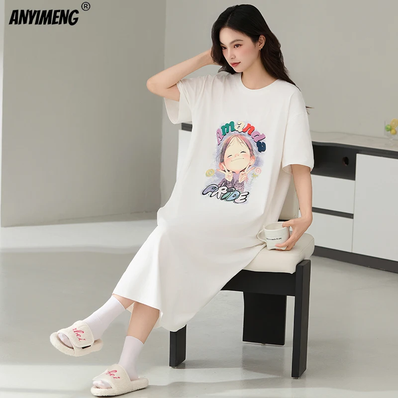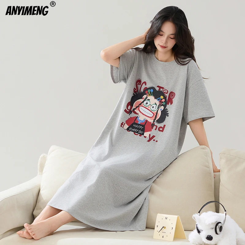 جودة عالية كول 95% القطن النساء قمصان النوم الصيف قصيرة الأكمام فساتين الليل الطويلة لسيدة M-4XL حجم كبير قميص النوم المرأة
