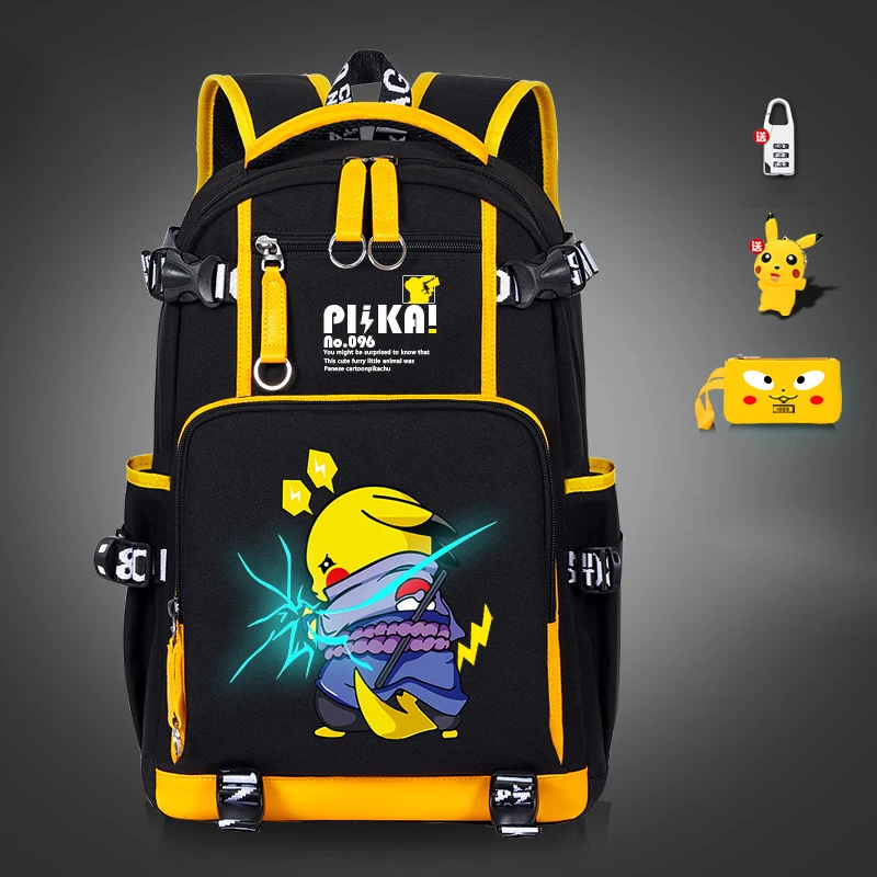 حقيبة ظهر بيكاتشو من بوكيمون ، طباعة كرتونية أنيمي ، حقيبة مدرسية للطلاب مع حقيبة أقلام رصاص ، سعة عالية ، حقائب كتب للأطفال ، حقيبة سفر ، هدية