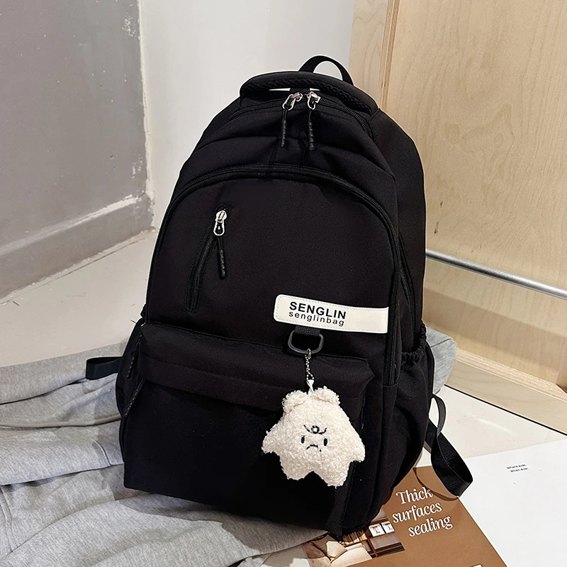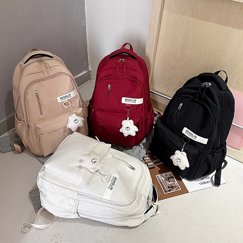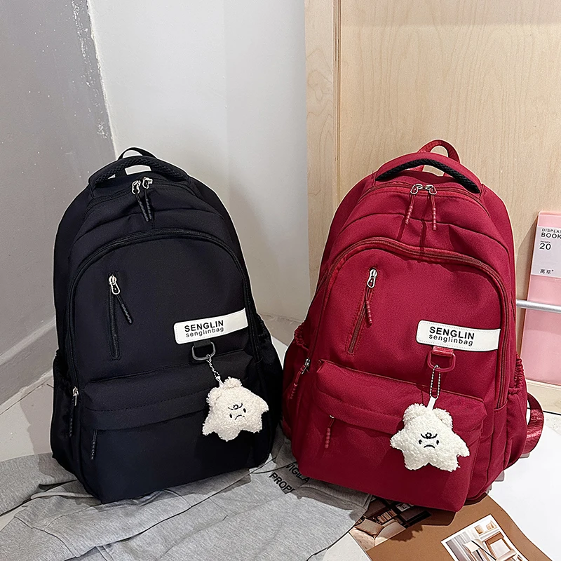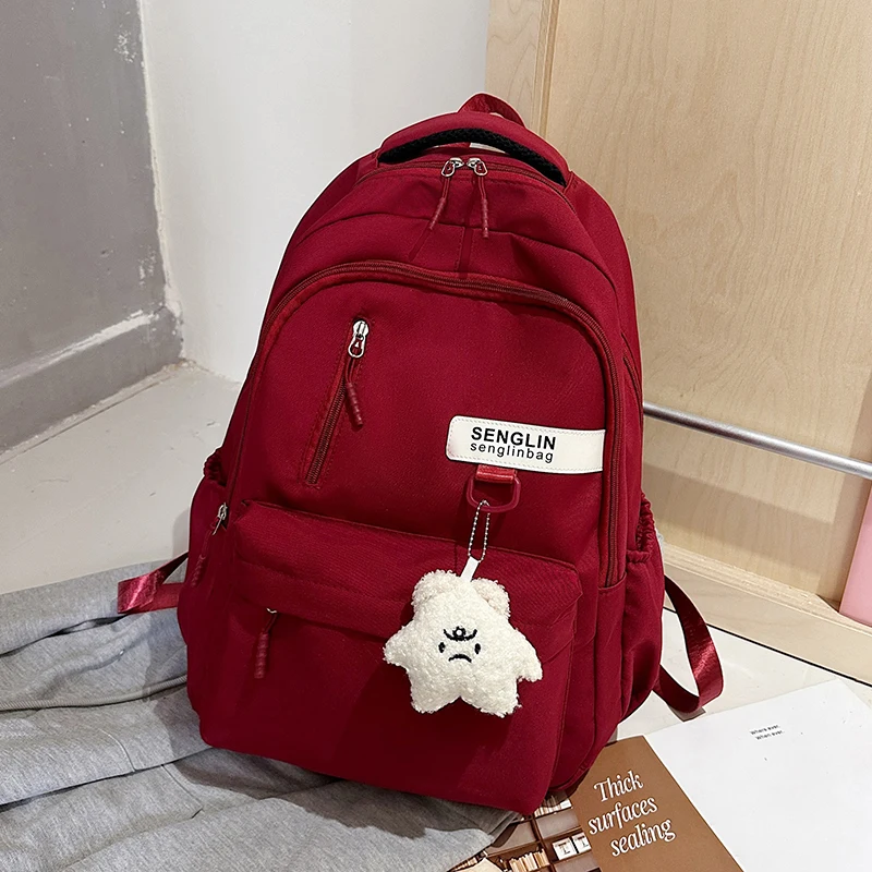 حقيبة ظهر حمراء عصرية للنساء ذات سعة كبيرة وخفيفة الوزن وحقيبة مدرسية كاجوال للسفر وحقيبة ركاب يومية مع قلادة لطيفة