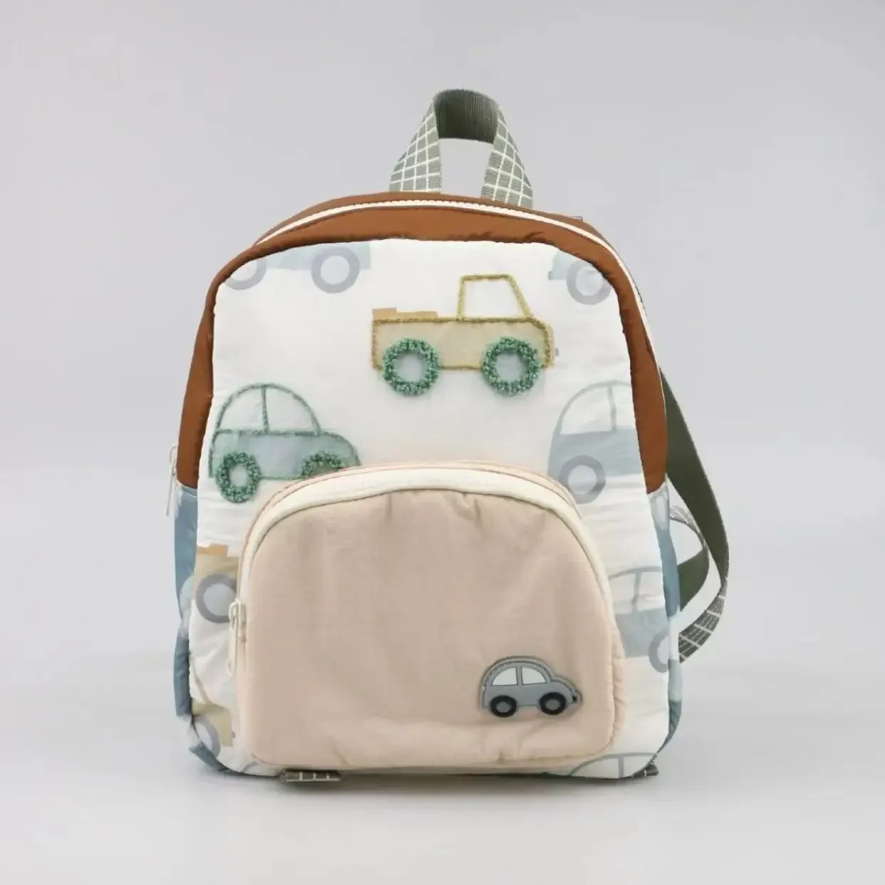 حقيبة ظهر مخصصة للأطفال مع تطريز السيارة - حقيبة حفاضات للأطفال الصغار تحمل اسمًا مخصصًا، حقيبة مشي للبنين والبنات، حقيبة مدرسية لطيفة