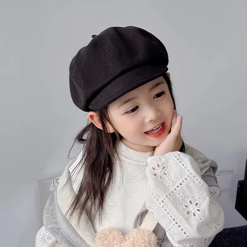 قبعة شعر أحادية اللون للأطفال ، قبعة صغيرة مثمنة ، قبعة رسام ، قبعة فتاة كورية ، أقنعة شمس للأطفال ، الخريف والشتاء ، 2-10 سنوات
