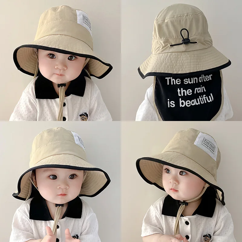 قبعات صيفية للأطفال من الشمس، قبعة صياد لطيفة على شكل رسوم كرتونية للأطفال الصغار مع شال حماية للرقبة، قبعات دلو للأطفال واقية من الشمس في الهواء الطلق