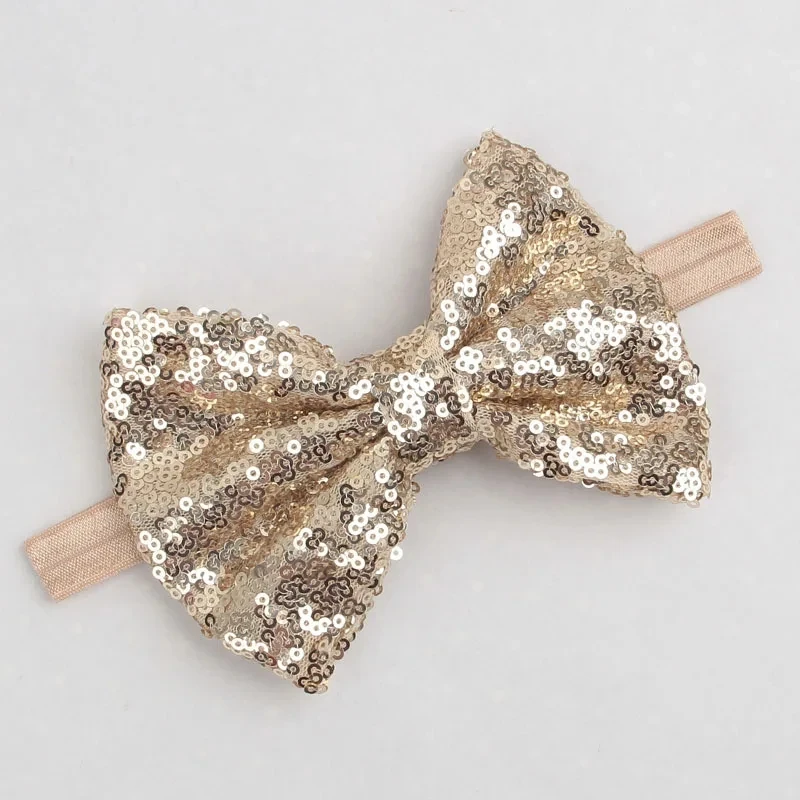 كبير الترتر القوس النايلون عقال للطفل الفتيات ، الذهب ، الفضة ، الصلبة ، الملونة ، رباط شعر ، الإكسسوارات ، جديد ، 1 قطعة