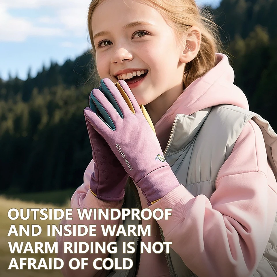 قفاز الجري الشتوي للأطفال من GTUBIKE - قفازات ركوب الأطفال الدافئة للطقس البارد، قفازات رياضية حرارية مقاومة للرياح للمشي لمسافات طويلة وركوب الدراجات