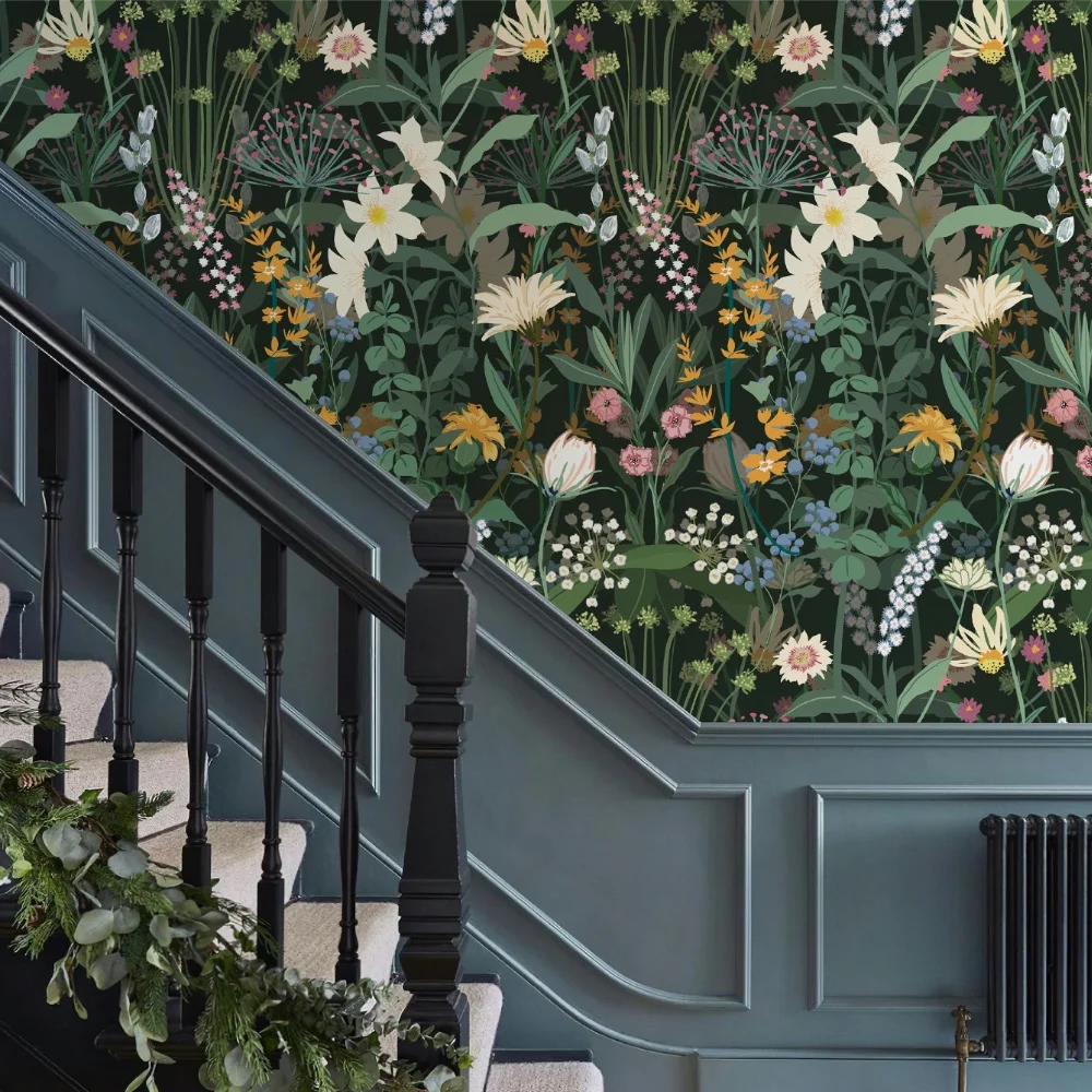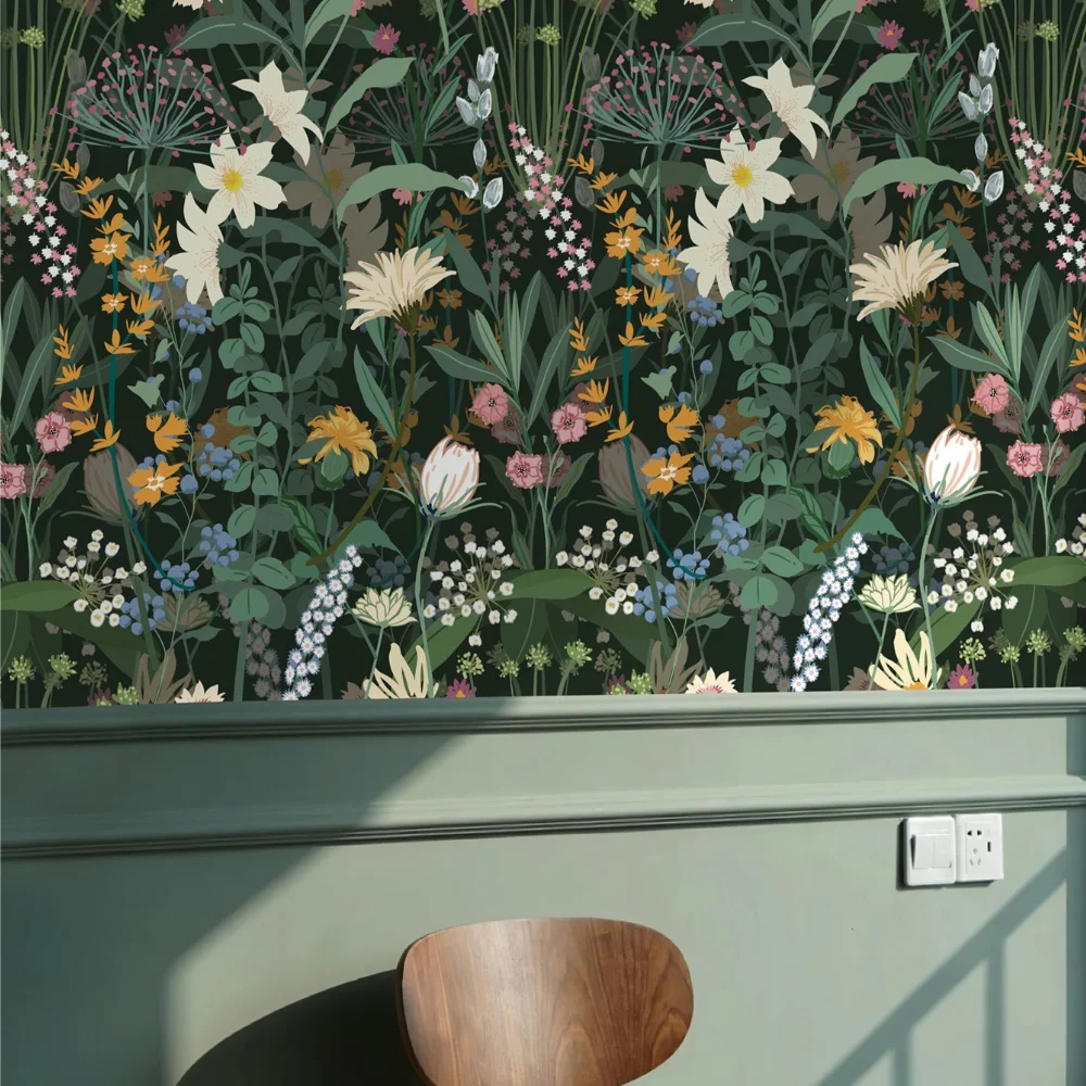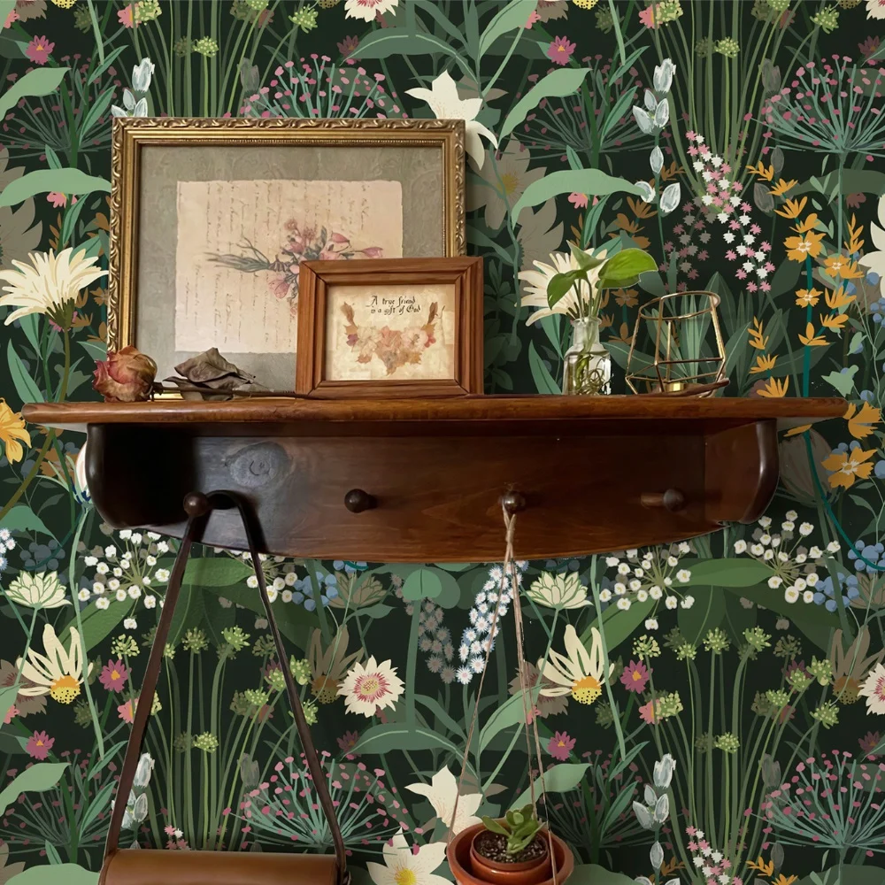 خلفية زهرية خضراء مقاومة للماء من مادة PVC ملصقات جدارية قابلة للتقشير واللصق ذاتية اللصق وقابلة للإزالة لتزيين المنزل القديم
