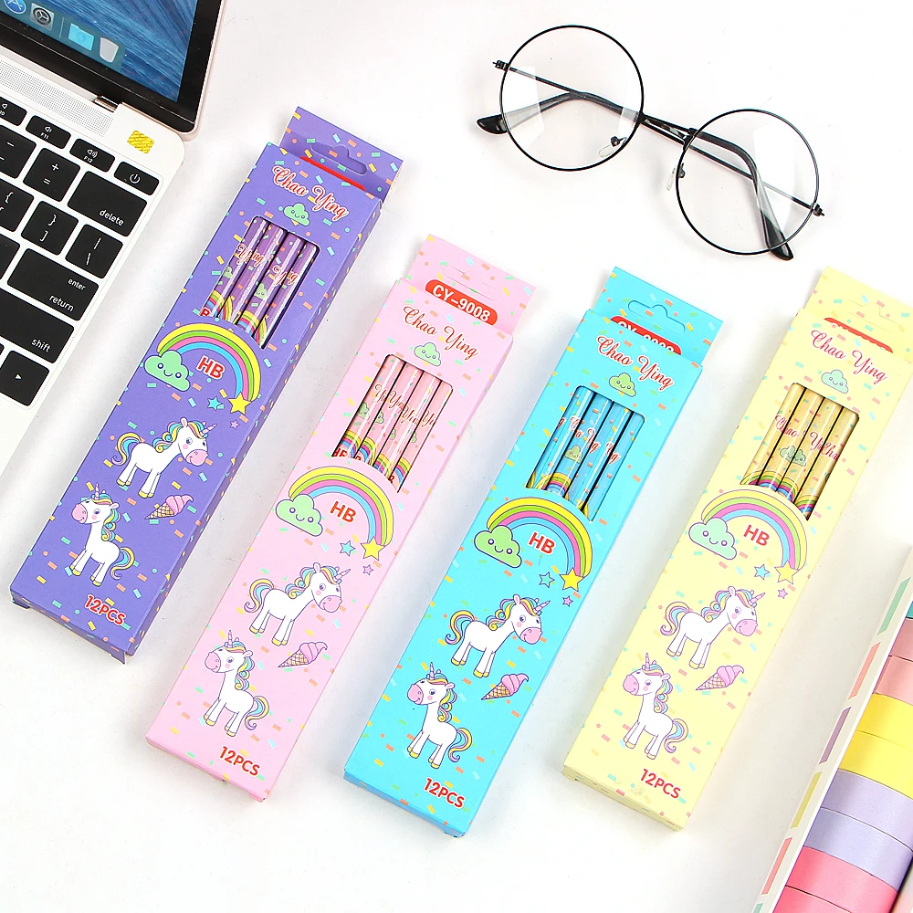 قلم كرتون أحادي القرن كاواي ، أدوات رسم HB ، أدوات رسم ، أدوات مكتبية للطلاب ، مستلزمات مكتبية للمدارس ، هدايا للأطفال ، لطيفة ، 12: * لكل مجموعة