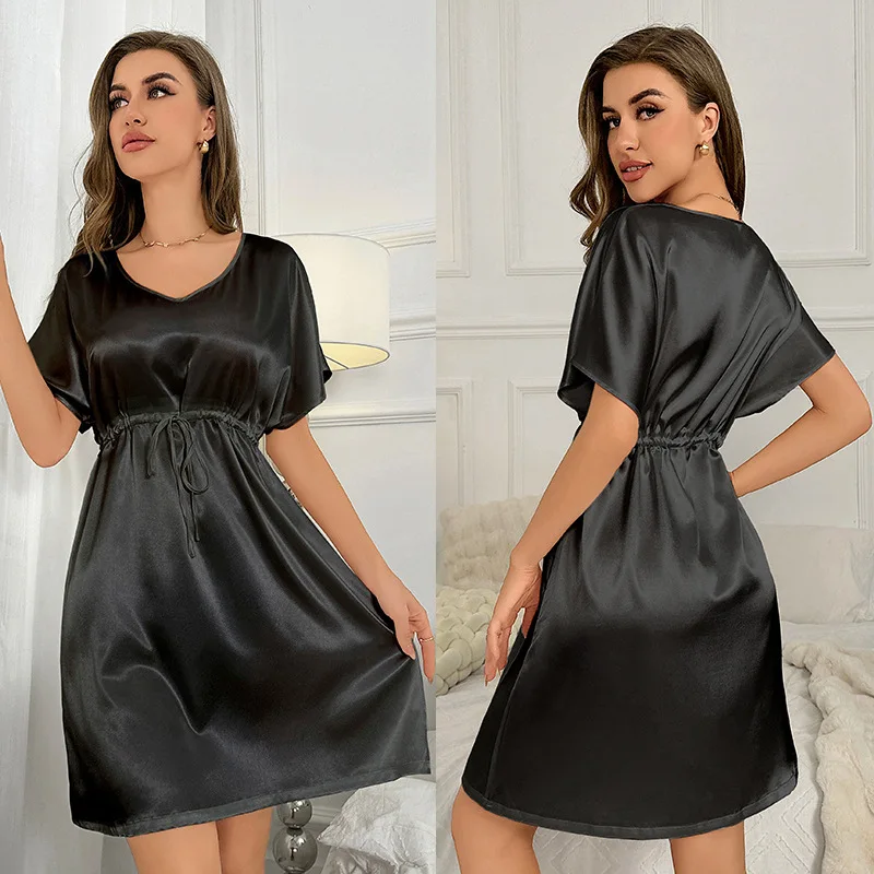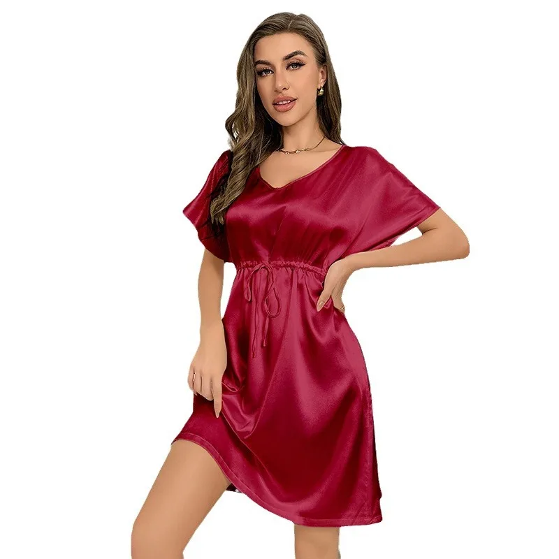 قميص نوم نسائي برقبة على شكل حرف v ، لباس نوم ، ملابس نوم ، ملابس داخلية صباحية ، رداء حريري من الساتان ، قميص نوم صيفي ، فستان منزلي