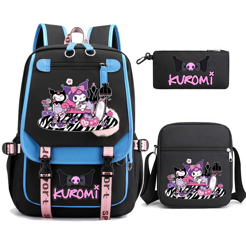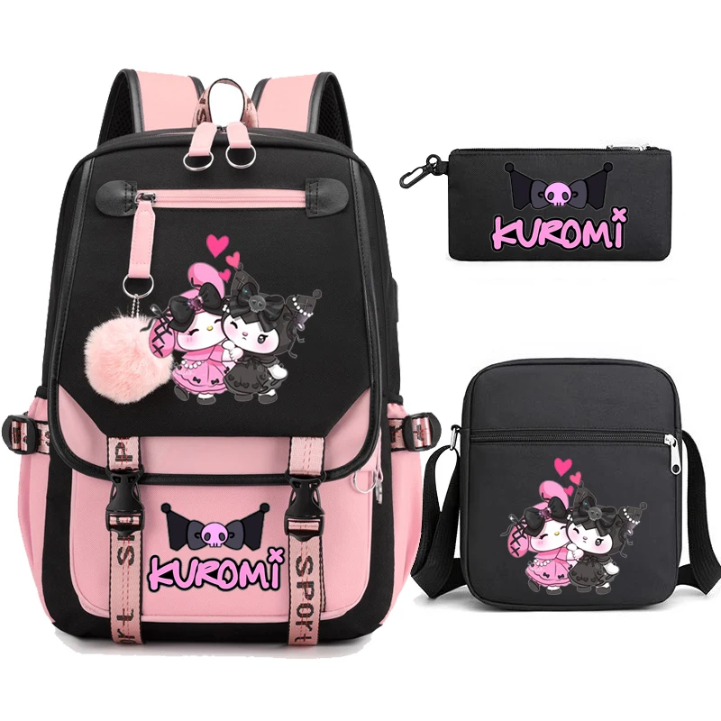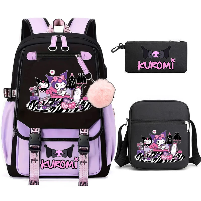 Kuromi حقيبة ظهر الطالب 3 قطعة حقيبة الظهر الكرتون حقيبة مدرسية للبنات لطيف الترفيه السفر Mochilas