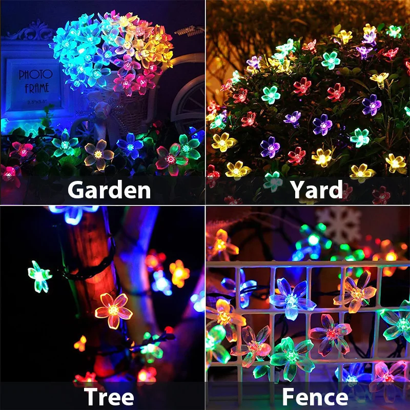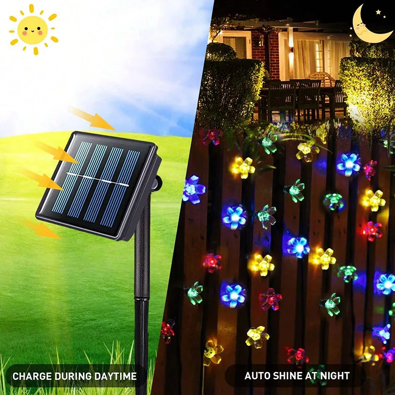 LED سلسلة أضواء الشمسية زهر الكرز جارلاند أضواء في الهواء الطلق الشمسية حديقة فناء ديكور أضواء عيد الميلاد حفل زفاف الديكور