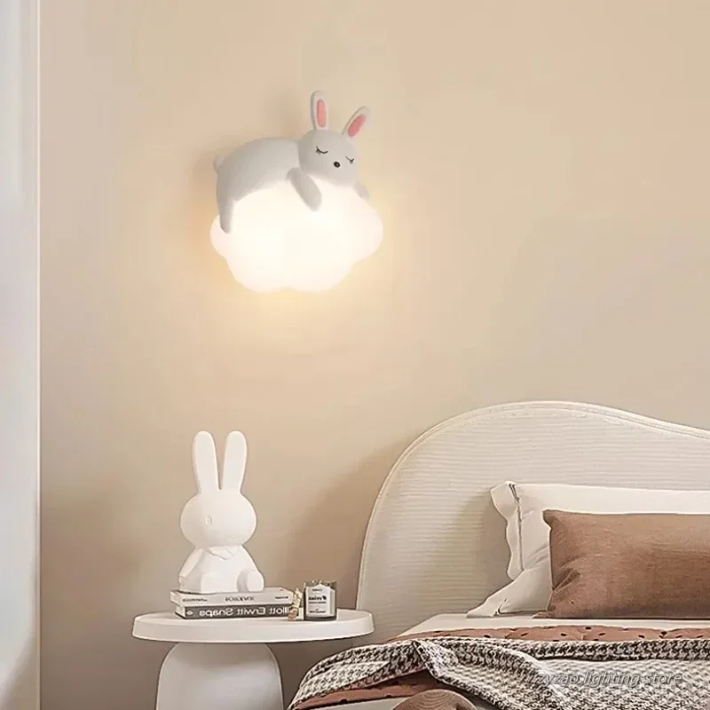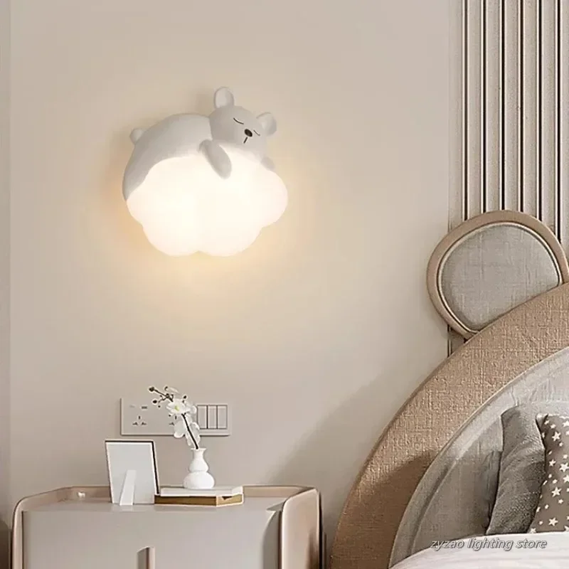 لطيف غرفة الأطفال السرير الجدار مصباح الدب أرنب سحابة مصباح الإبداعية كريم نمط غرفة الطفل الحضانة صبي فتاة غرفة نوم الجدار الخفيفة