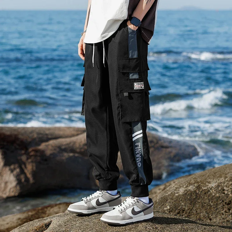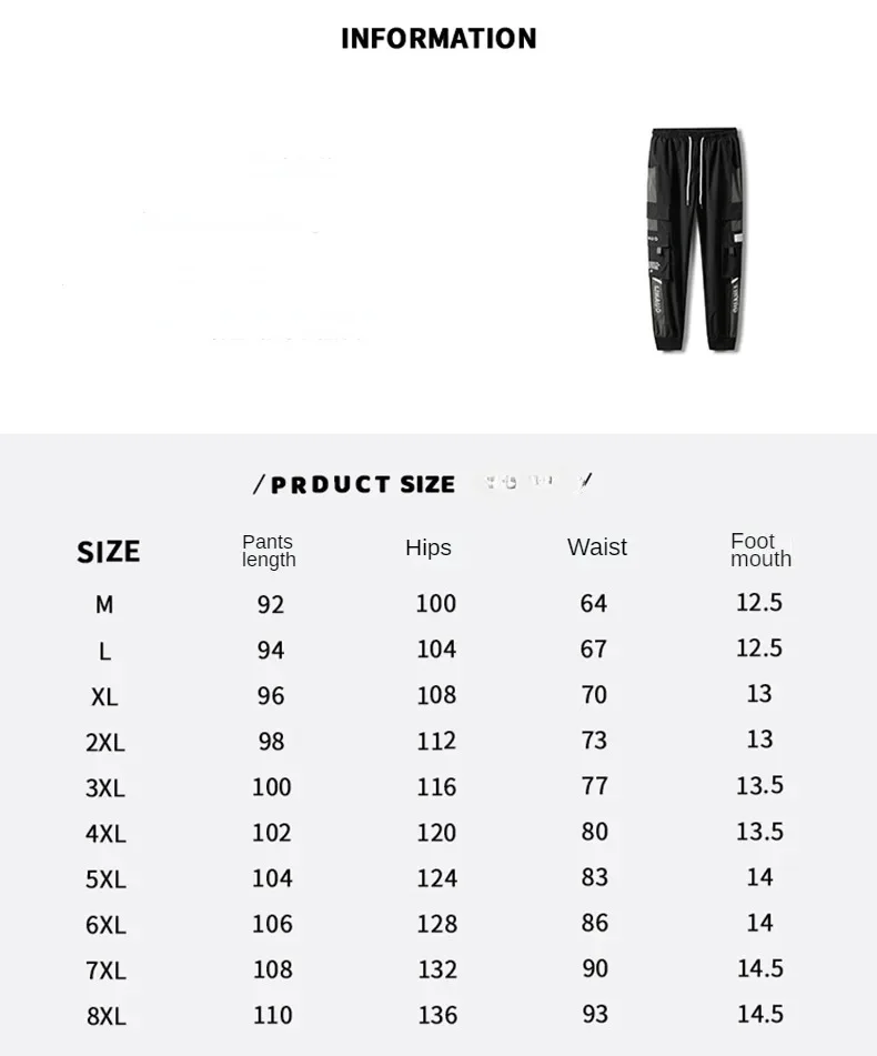 ليغنغز رجالي كاجوال فضفاض ياباني ، بنطال رياضي مرقع ، بنطال طويل متعدد الاستخدامات ، مقاس كبير 8XL 7XL ، ربيعي