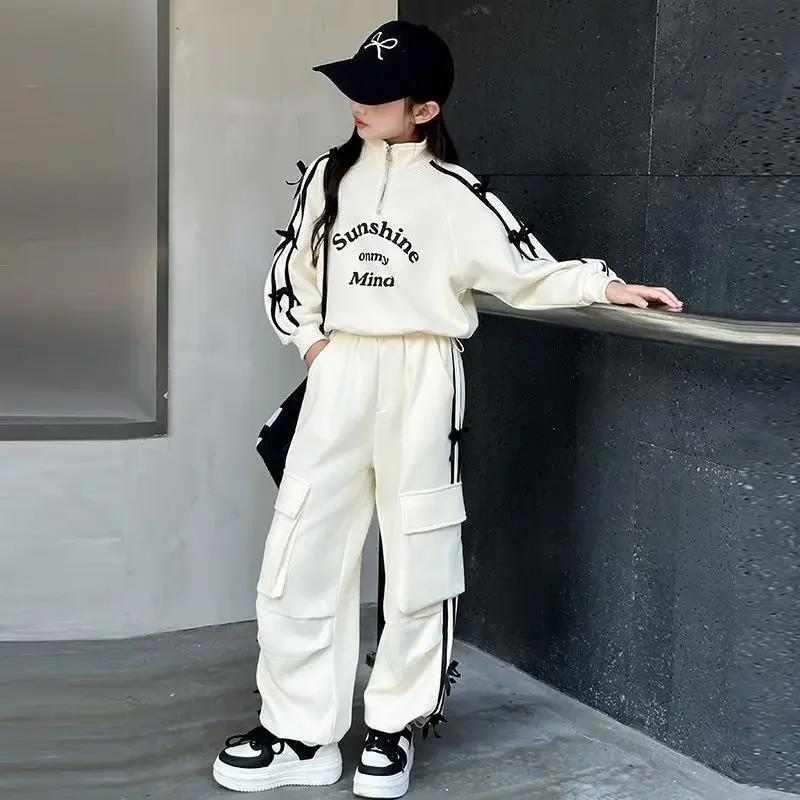 مجموعة الخريف العصرية الفتيات المدرسة المتوسطة الرياضية 2 قطعة مجموعة ملابس الربيع البضائع بدل مجموعات الأطفال
