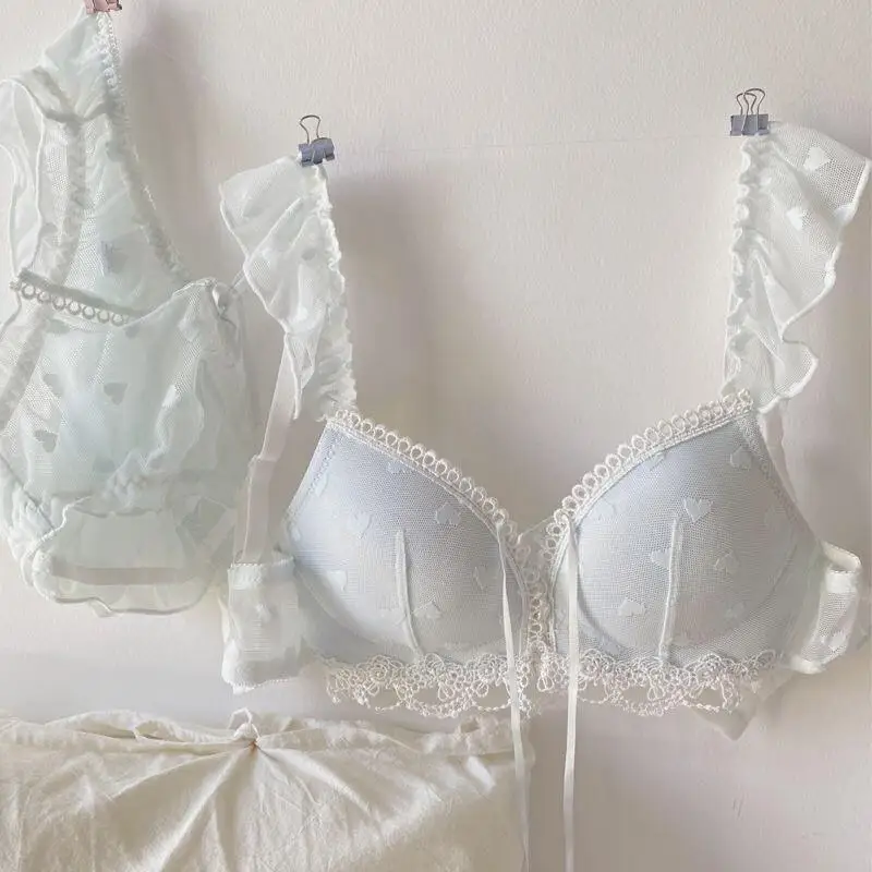 مجموعة الملابس الداخلية اليابانية على الطراز الأوروبي، صدرية صغيرة بنمط قلب جميل، حمالة صدر لاسلكية مريحة ومضادة للترهل