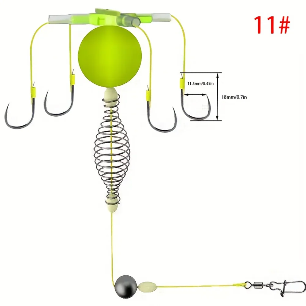 مجموعة قفص طعم الصيد مع خطافات سلسلة من الفولاذ الكربوني مضادة لللف مجموعة تعويم المغذية كاملة لصيد الأسماك 3 # 5/7/9/11/13