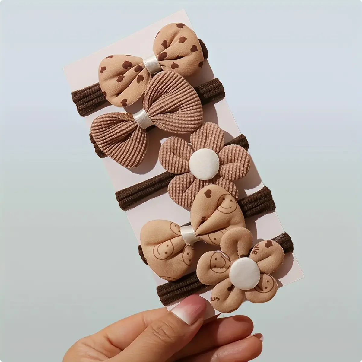 مجموعة مكونة من 10 قطع من إكسسوارات الشعر الرياضية للفتيات اللطيفة تتميز بتصميم زهور وربطة عنق، باللون البيج الفاتح.