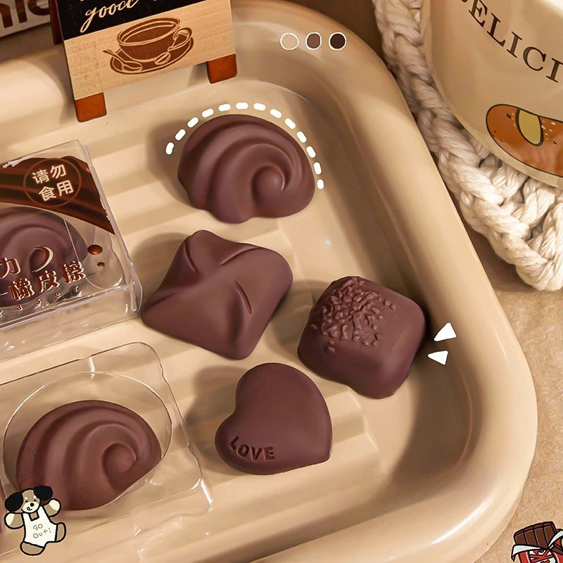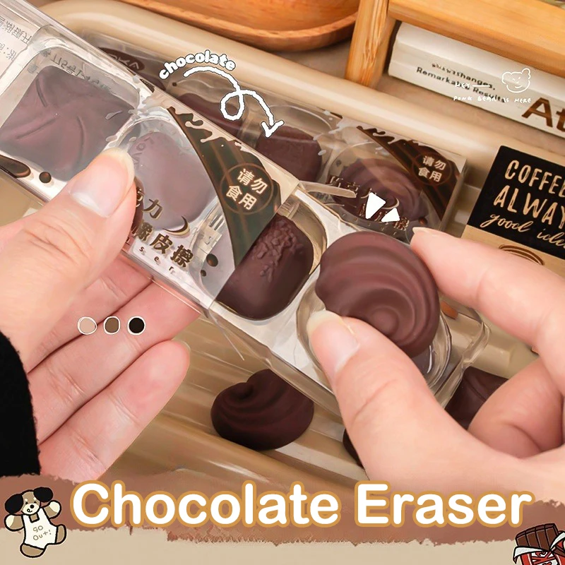 مجموعة مكونة من 4 محايات شوكولاتة مبتكرة، وعناصر قرطاسية كاواي، ومستلزمات مثالية للطلاب والمكتب، وفكرة هدية رائعة