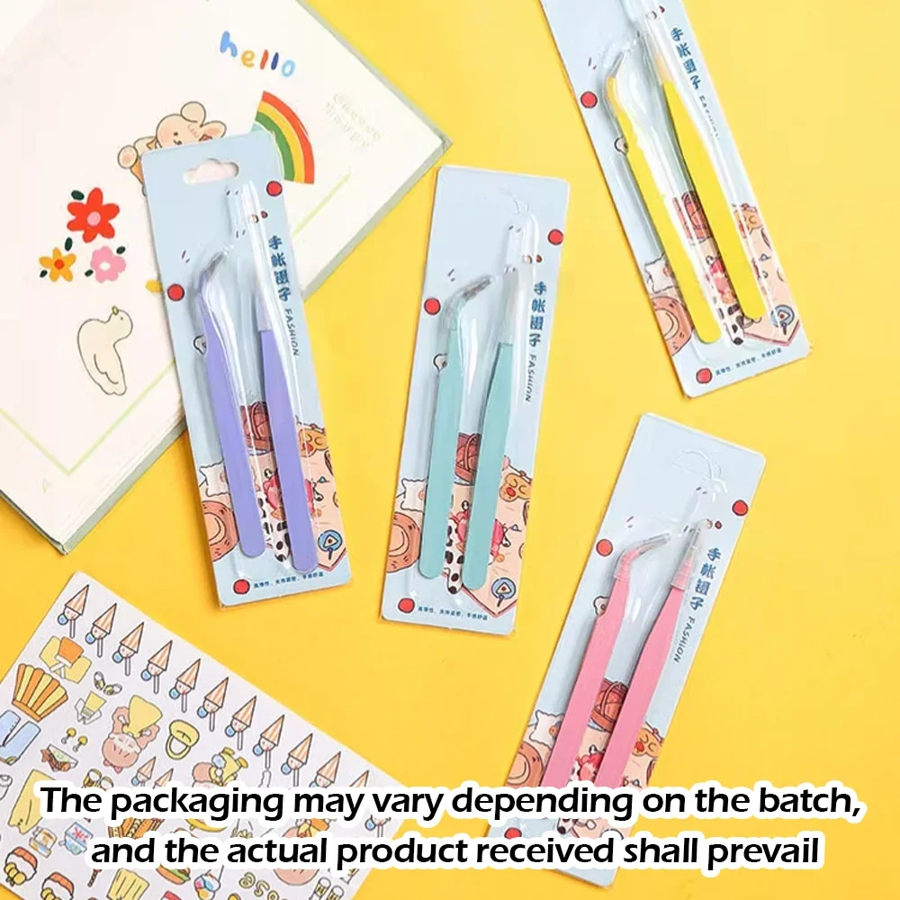مجموعة ملاقط ملونة معكرون مكونة من قطعتين، أداة ملصق مستقيمة/منحنية يمكنك صنعها بنفسك للمجلة/سجل القصاصات - هدية قرطاسية العودة إلى المدرسة (وردي/Bl)
