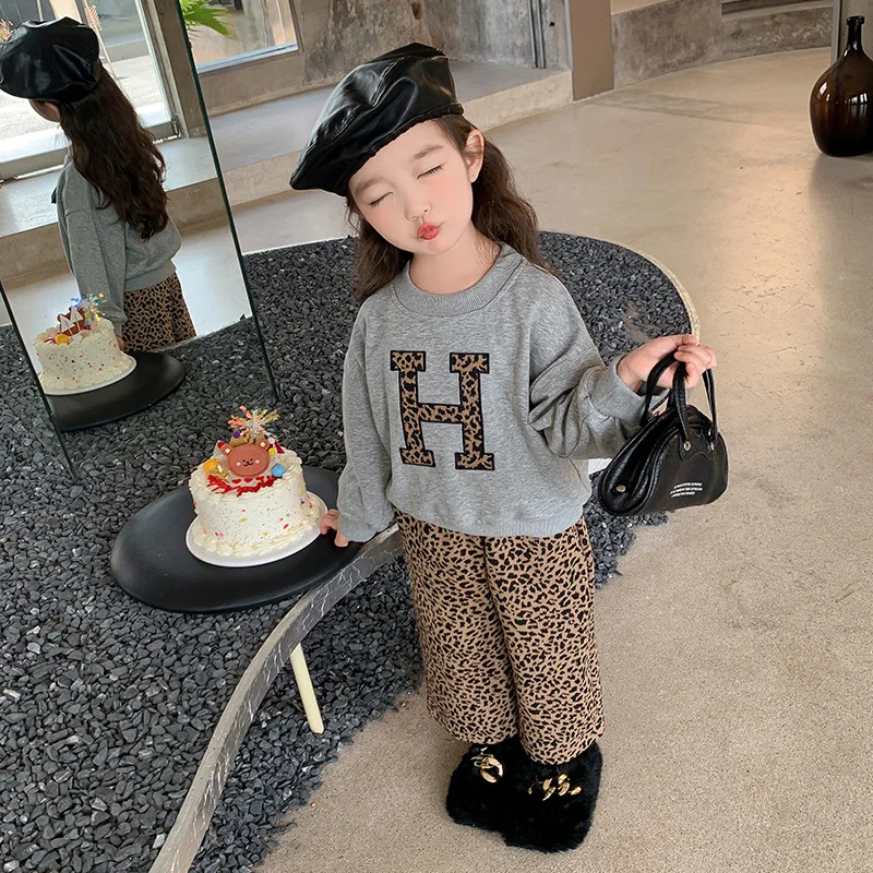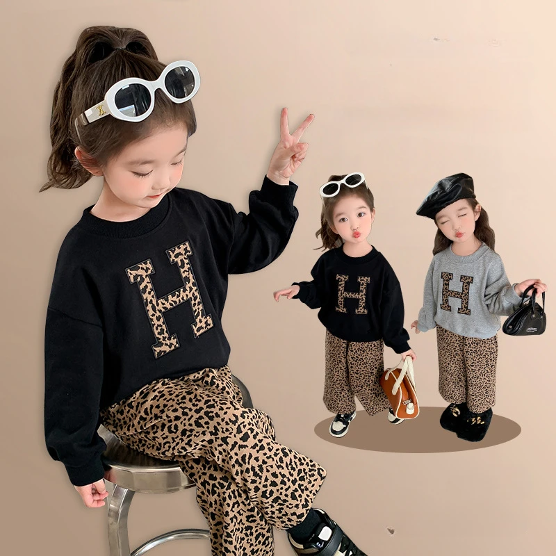 مجموعات ملابس الأطفال H رسالة طويلة الأكمام هوديي + السراويل واسعة الساق 2PCS طفلة ملابس الاطفال الملابس