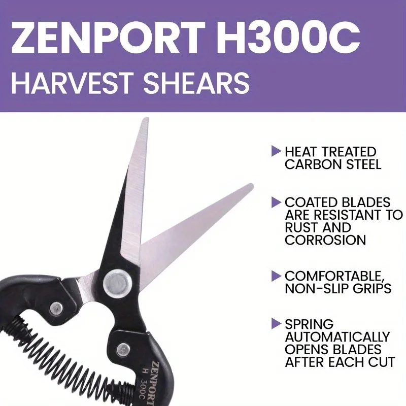 مقصات حديقة يدوية H300C مع شفرات طويلة منحنية من الفولاذ الكربوني - مقابض مريحة مقاومة للصدأ وغير قابلة للانزلاق