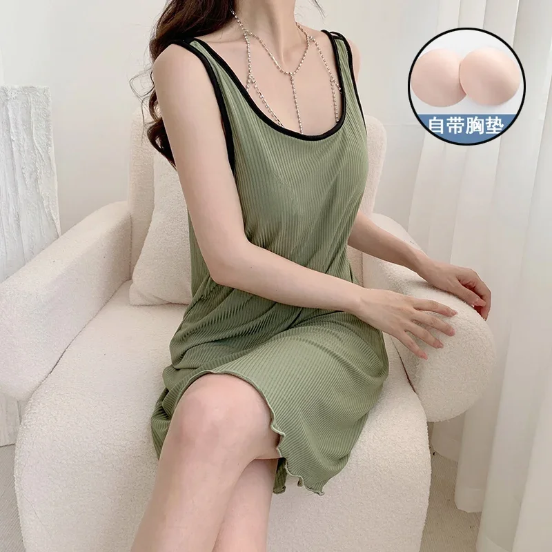 ملابس داخلية بدون أكمام، قمصان نوم قطنية للنساء، ملابس نوم صيفية كورية لطيفة، فستان نوم، فستان للسيدات، ملابس نوم منزلية