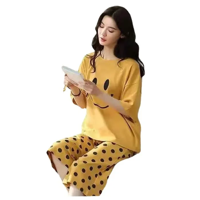 ملابس نوم نسائية صيفية جديدة بأكمام قصيرة طقم مكون من قطعتين مقاس كبير غير رسمي يمكن ارتداؤه خارج المنزل ملابس مادة رقيقة