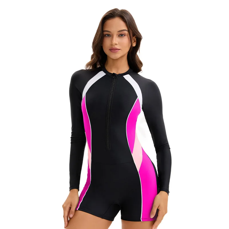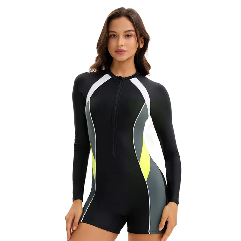 ملابس سباحة نسائية قطعة واحدة بأكمام طويلة، بدلة سباحة للنساء، بدلة سباحة محمية من الأشعة فوق البنفسجية