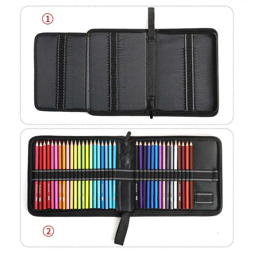 منظم قلم رصاص للرسم الاحترافي ، ستارة قلم قابلة للطي ، حقيبة قلم رصاص أكسفورد سوداء ، قماش مُدرج ، 36 ، 48 ، 72 فتحة