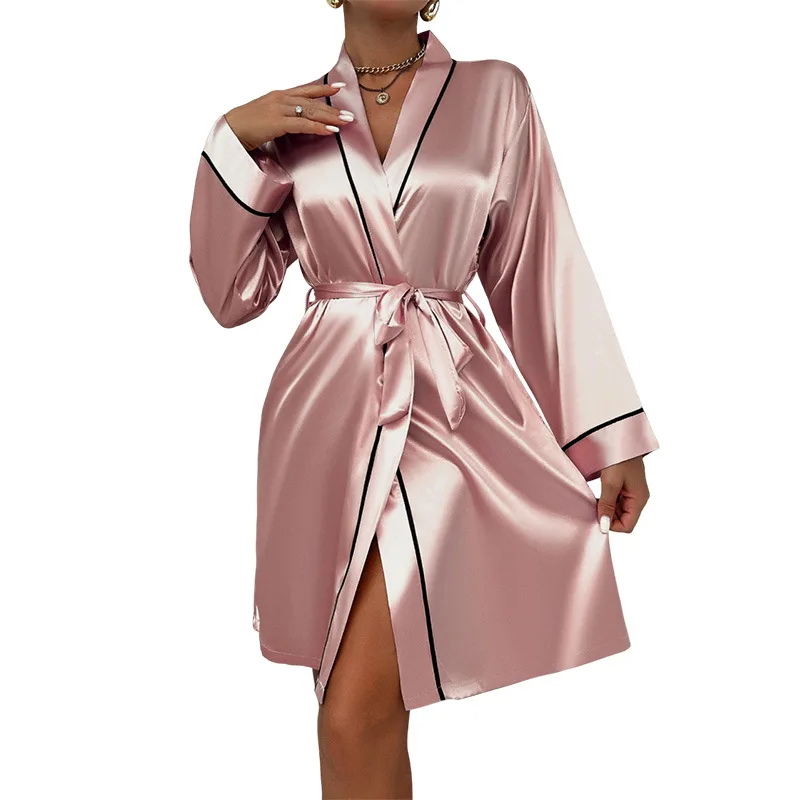 موضة مثير منتصف طول ثوب نوم حرير بسيط الحرير تقليد ملابس المنزل عادية الدانتيل يصل البشكير الصباح العباءات منامة للنساء