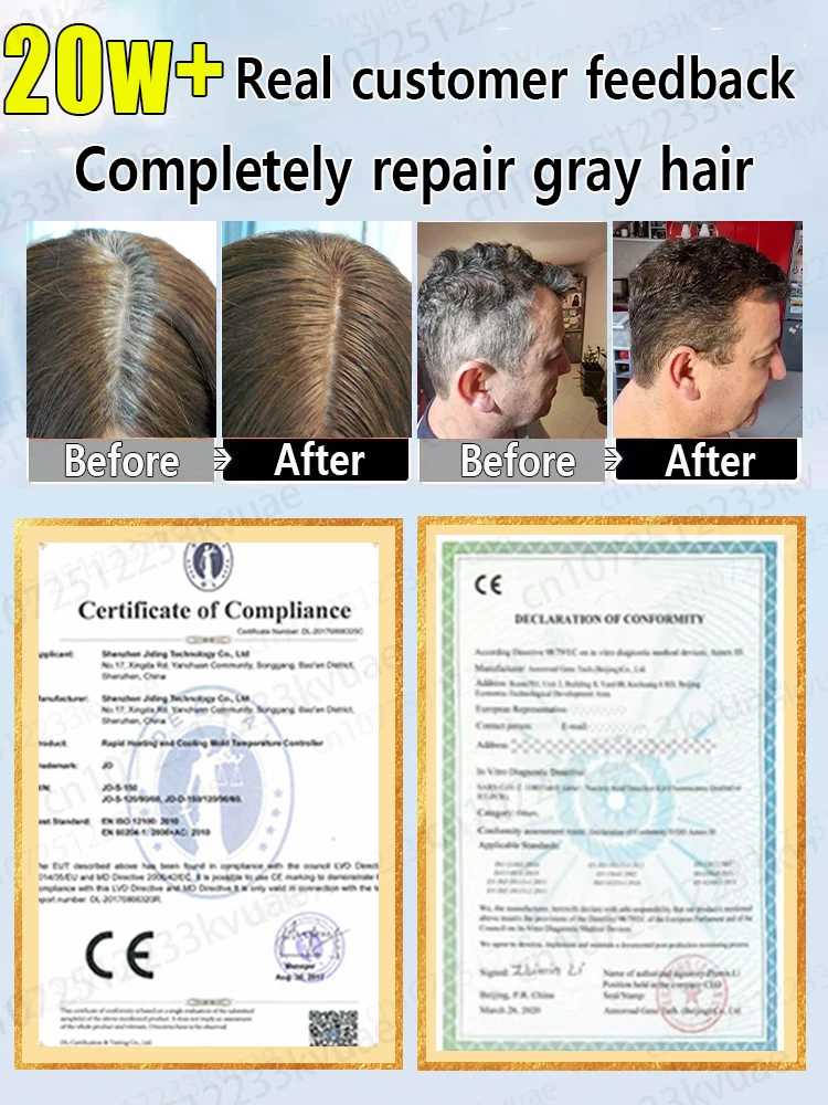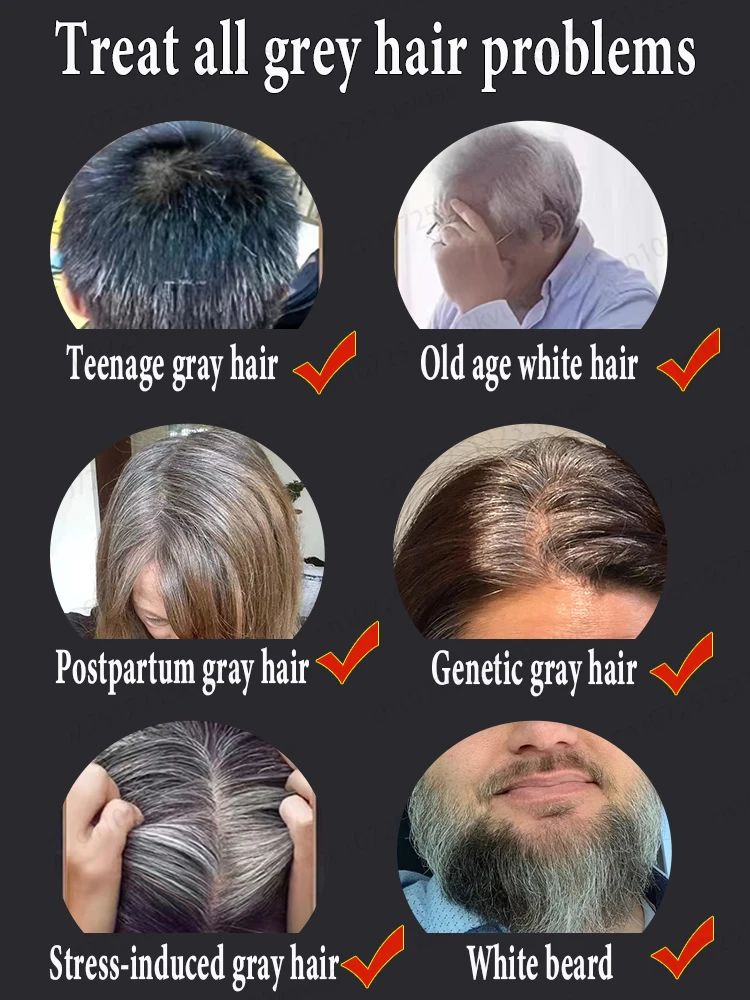 مصل معالجة الشعر الرمادي - الشعر الرمادي العكسي، استعادة اللمعان الأسود الطبيعي، مستخلص عشبي طبيعي 100%، نتائج سريعة لـ M