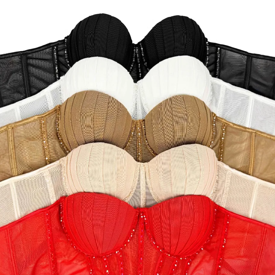 مثير شبكة تصميم بروتيل سترة نمط السيدات مشد قمم مع وسادة الصدر تألق الماس الديكور هيكل السمكة الملابس الداخلية قمم