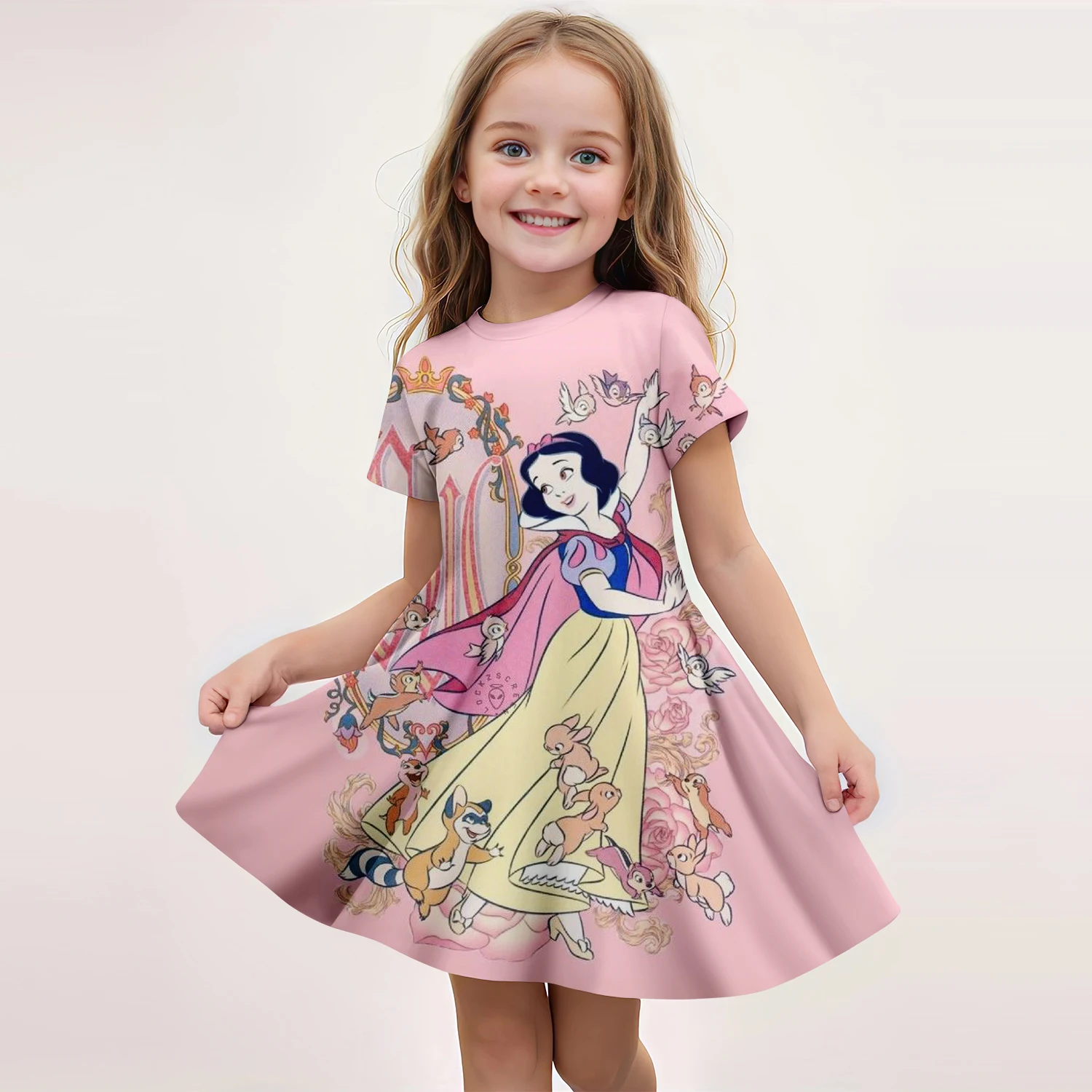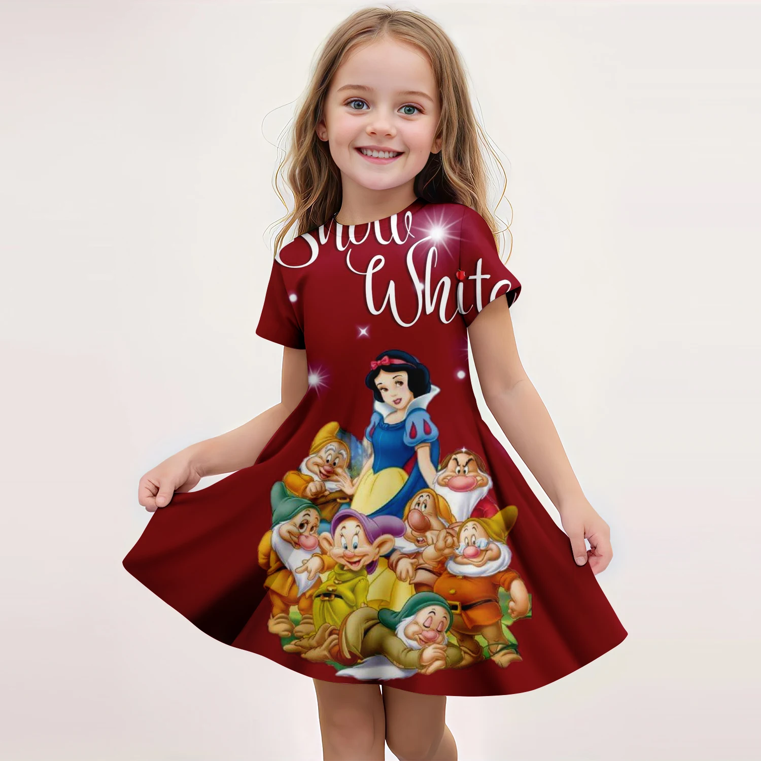 Potdemiel ديزني الصيف سنو وايت تنورة قصيرة الأكمام فتاة 3D المطبوعة الكرتون طباعة نمط قصيرة الأكمام الأميرة تنورة