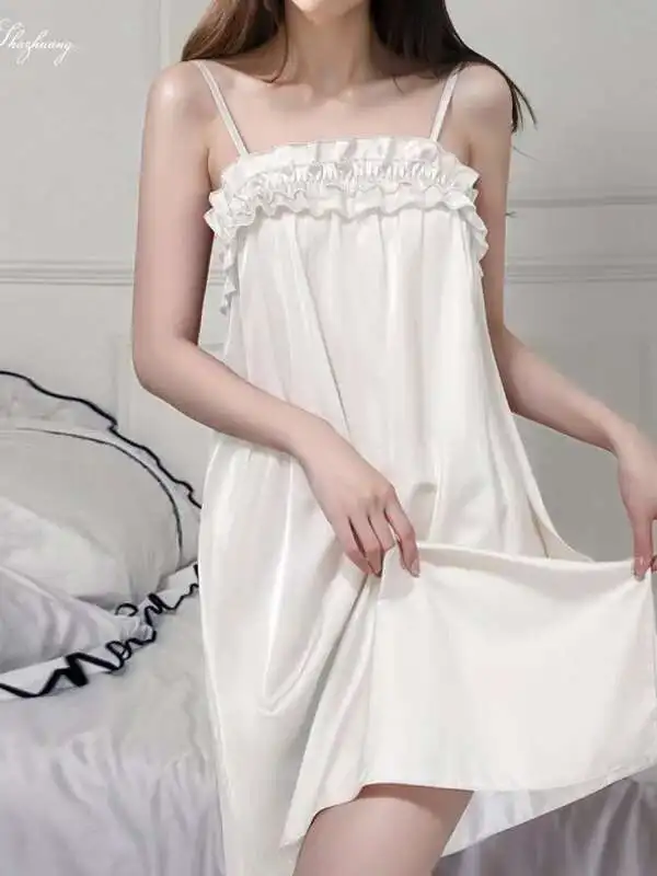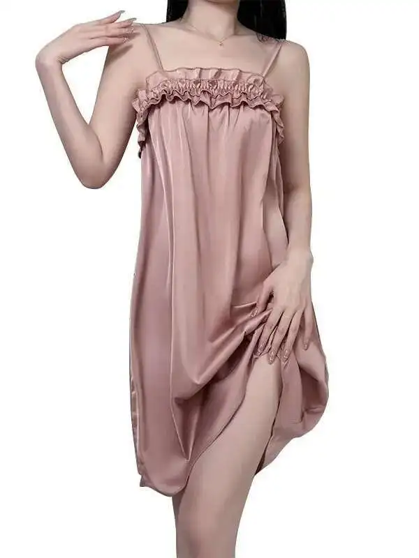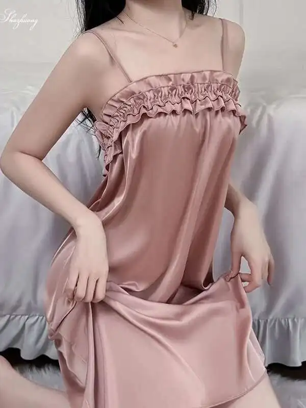 ربيع جديد الساتان النسخة الكورية الحلو والمثير الجليد والثلج الحرير فضفاض التخسيس الحمالات فستان مريح للنساء WP5N