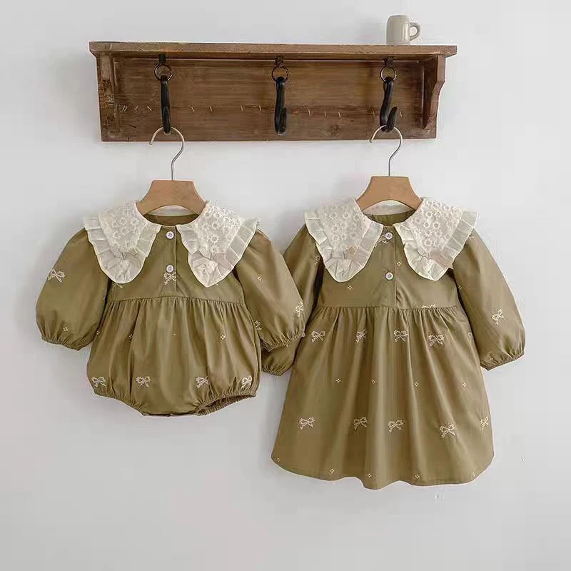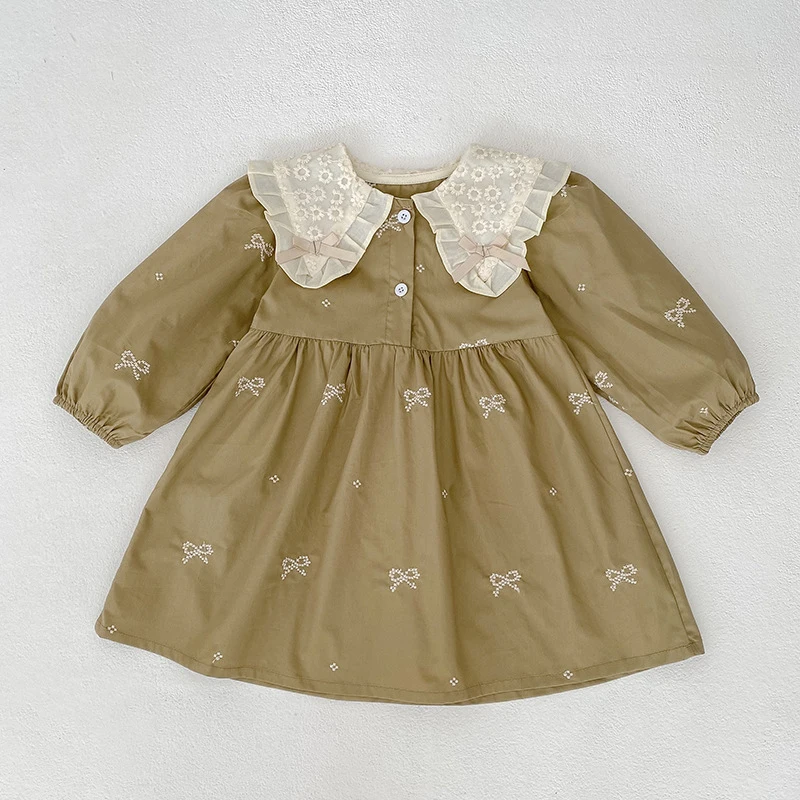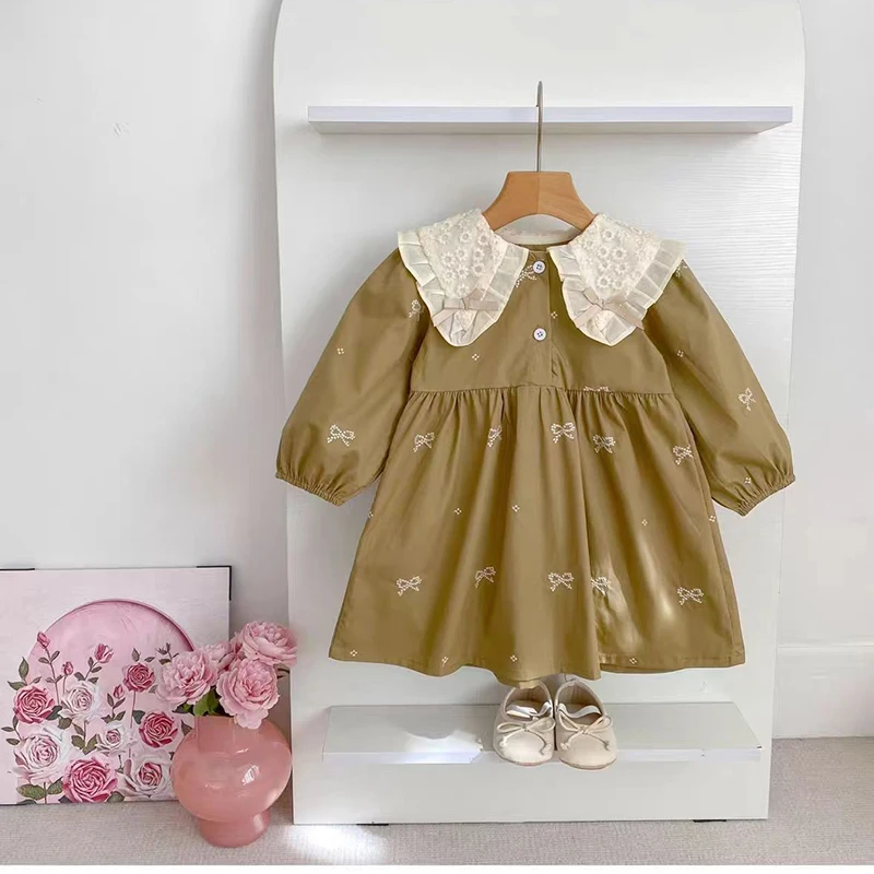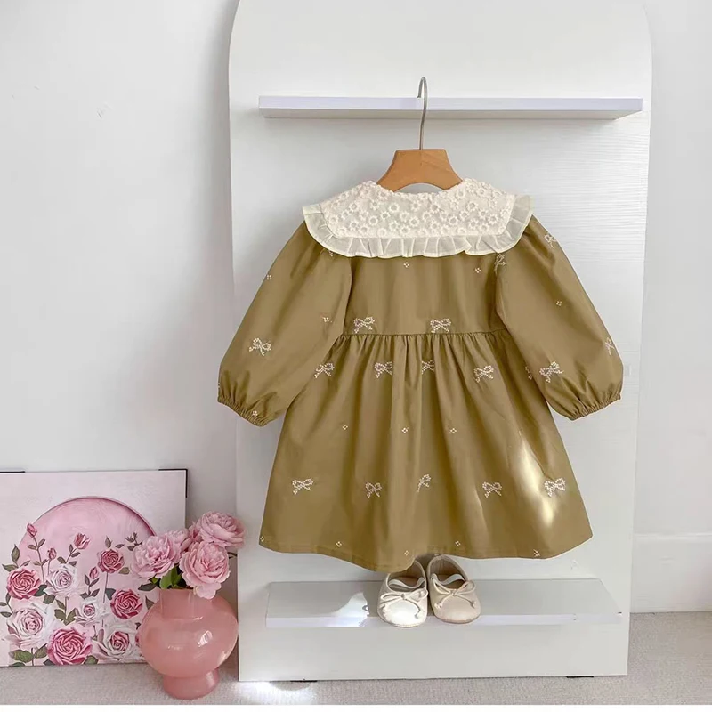 ربيع الخريف عقدة شعر للفتيات فستان 1-7 سنوات الأطفال طويلة الأكمام المطرزة دمية الرقبة فستان طفل أطفال القطن الخالص فساتين الأميرة