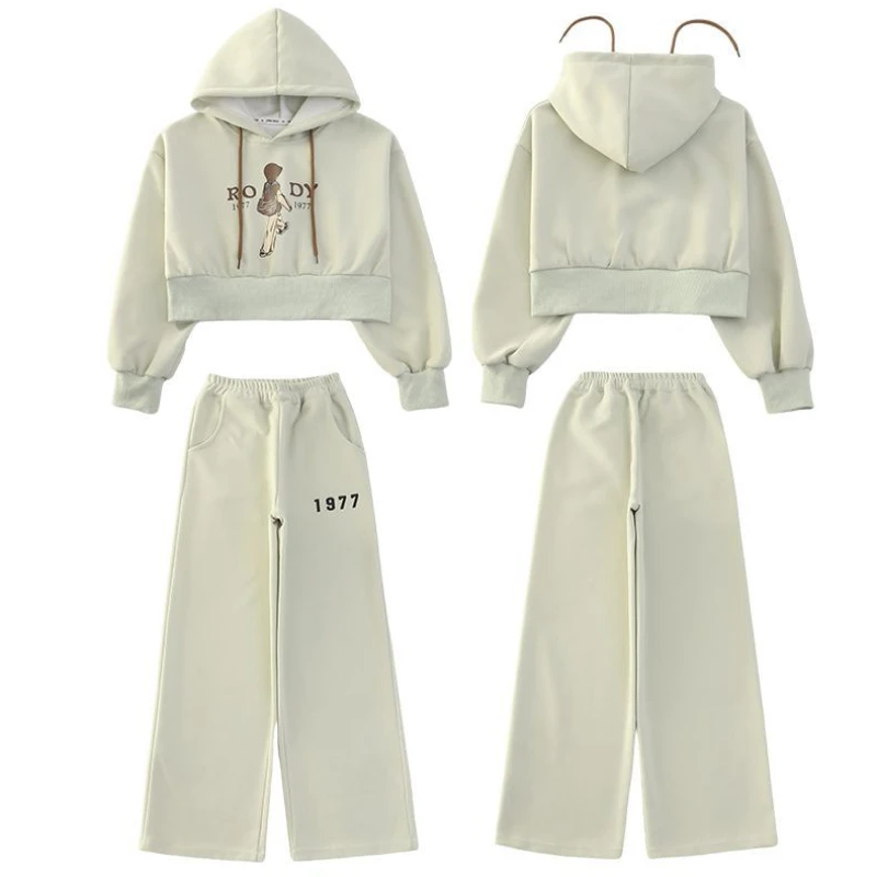 ربيع الخريف الفتيات الملابس مجموعة الكرتون المطرزة نمط هوديس البلوز السراويل 2 قطعة الزي للأطفال 8-13 سنة