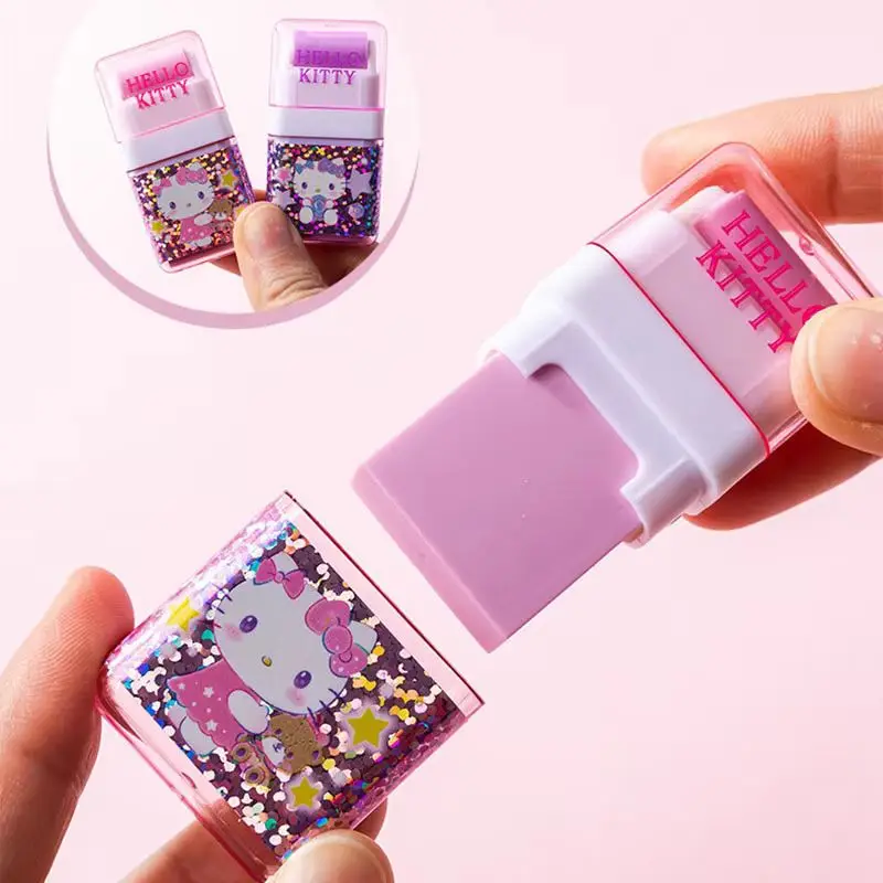 سانريو 6/12 قطعة ممحاة الأسطوانة مرحبا كيتي الوردي الطلاب القرطاسية الكرتون لطيف الاطفال ممحاة المطاط اللوازم المكتبية المدرسية هدية