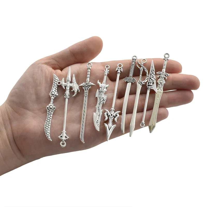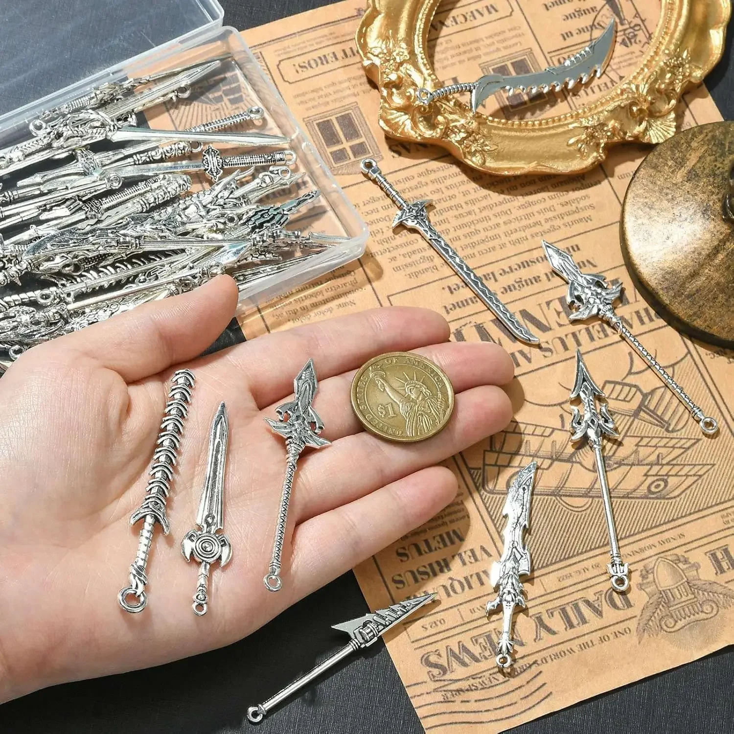 سحر سلاح عتيق مطلي بالفضة ، قلادات على شكل سيف معدني ، صياغة ذاتية الصنع ، إكسسوارات صنع المجوهرات ، جديد ، 20 طراز