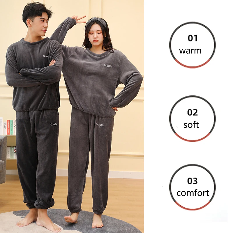 سميكة الدافئة الرجال منامة الخريف الشتاء Homewear بأكمام طويلة السراويل الطويلة الصلبة لينة ملابس خاصة 2 قطعة/المجموعة زوجين