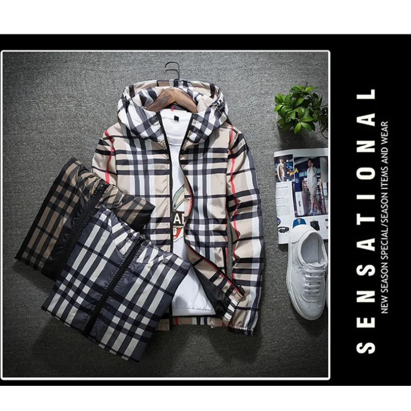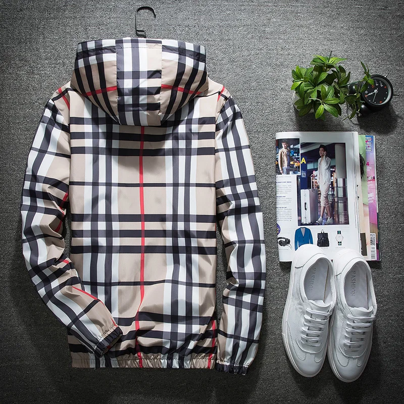 سترة عالية الجودة 2025 للرجال للربيع والخريف النسخة الكورية الجديدة سترة ربيعية ضيقة بقلنسوة كلاسيكية منقوشة مريحة وتنفس