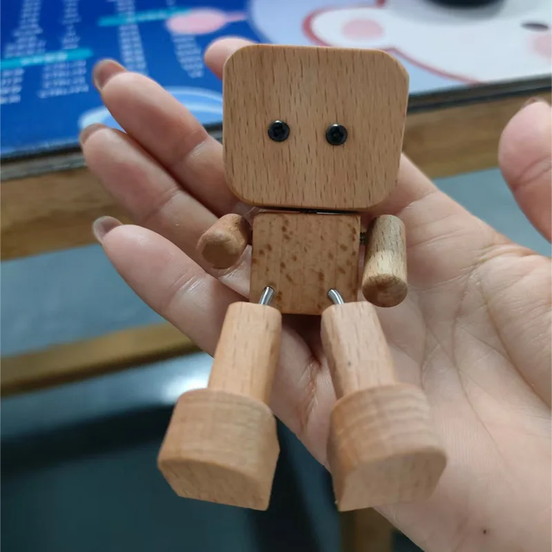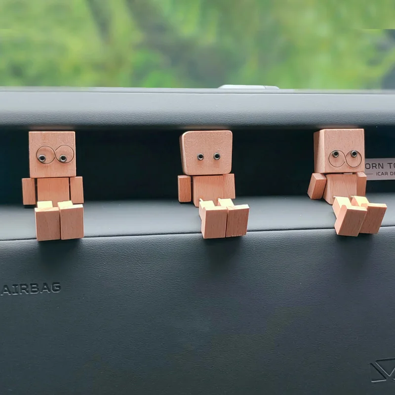 تهز رجل خشبي تمثال سيارة الديكور الحلي الصغيرة الساق يتأرجح روبوت تمثال لطيف الخشب رجل سيارة جيدة الهدايا الإبداعية