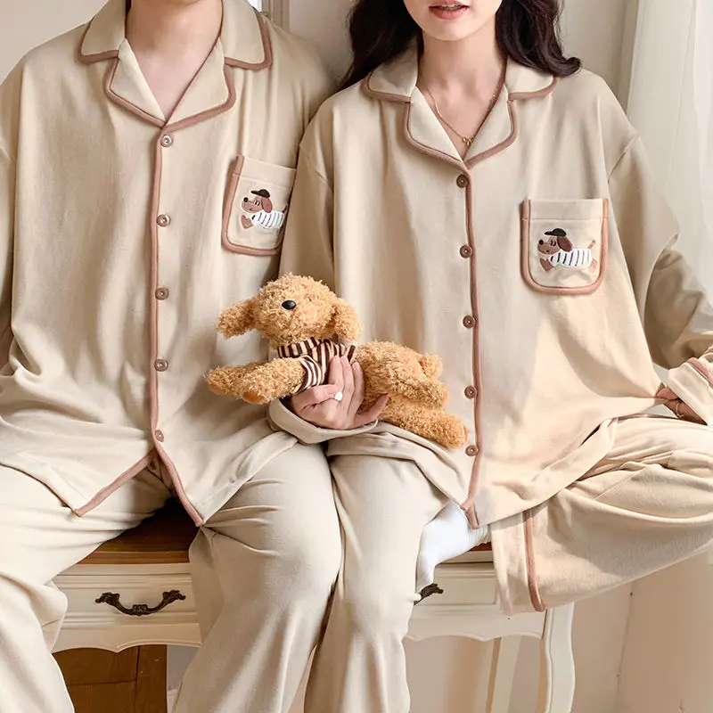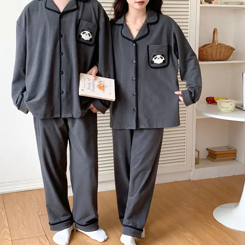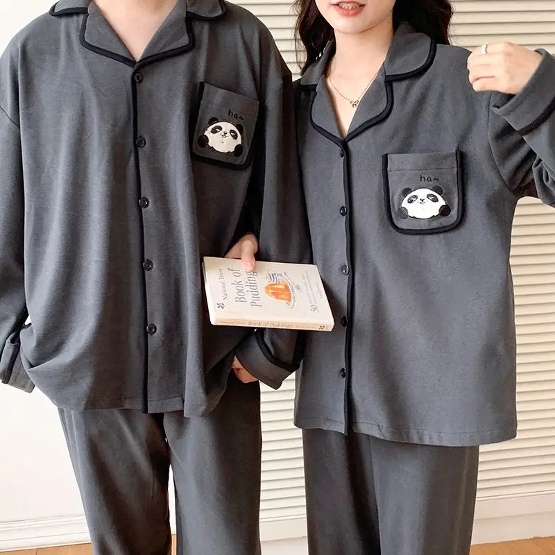 طقم بيجامة لطيف للزوجين للرجال 3XL مقاس كبير ملابس نوم نسائية مطبوعة برسوم كارتونية ملابس منزلية مريحة بأكمام طويلة ملابس منزلية