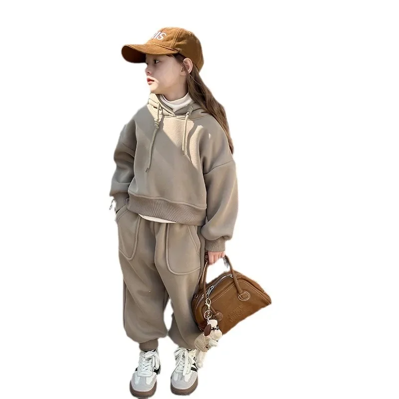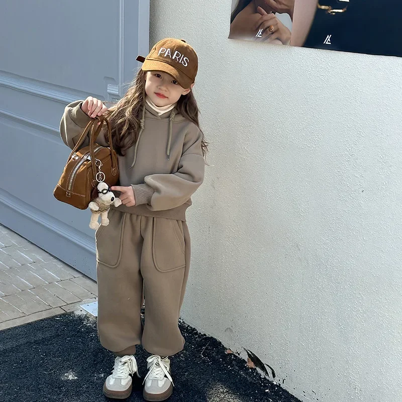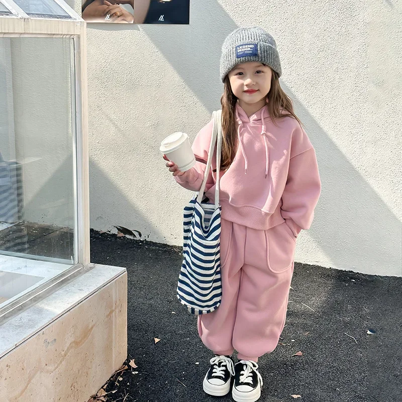 طقم هوديي للأطفال إضافة مخملية وسماكة على الطراز الكوري مركب Orly قطعة واحدة من البلوز المخملي والسراويل طقم مكون من قطعتين