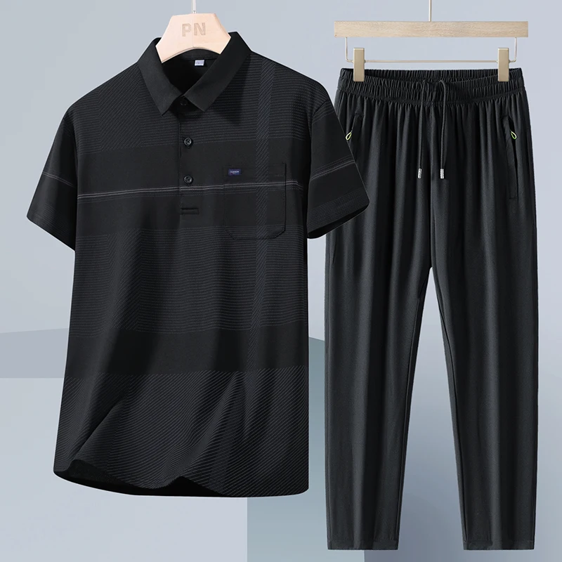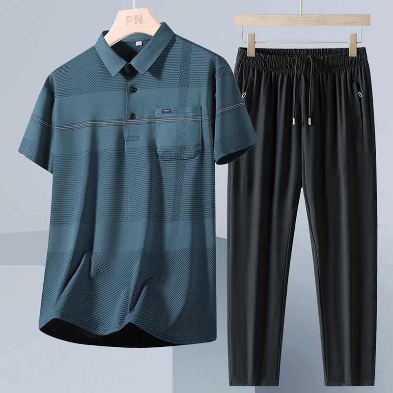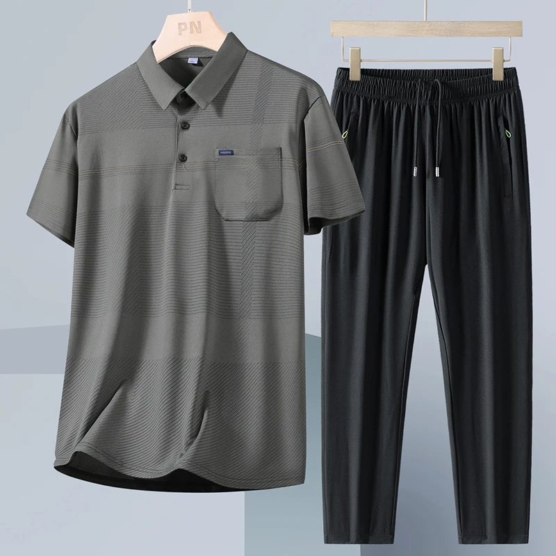 طقم قميص بولو كاجوال للعمل للرجال مع بنطلون كتان