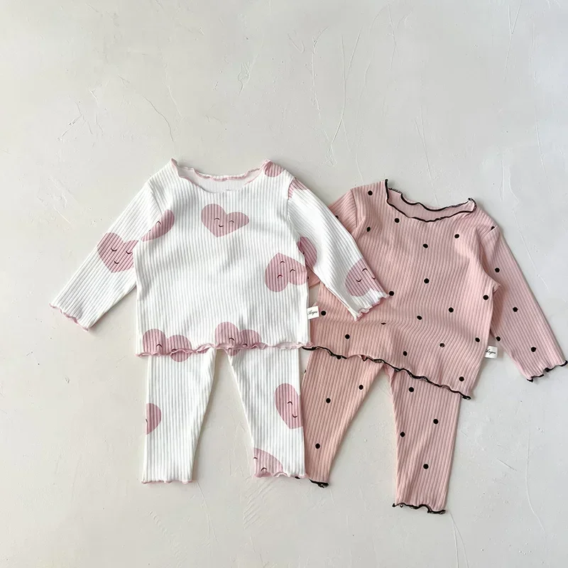 طقم ربيع للأطفال الرضع مطبوع عليه نقاط ملابس نوم للفتيات الرضع بدلة داخلية