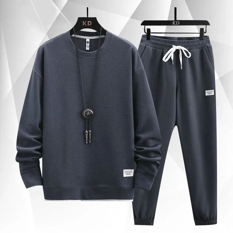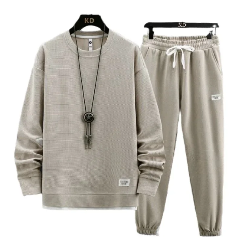 طقم رجالي رياضي كاجوال بأكمام طويلة فضفاض مناسب للخريف والشتاء مقاس كبير لون نقي مريح للتنفس طقم عصري
