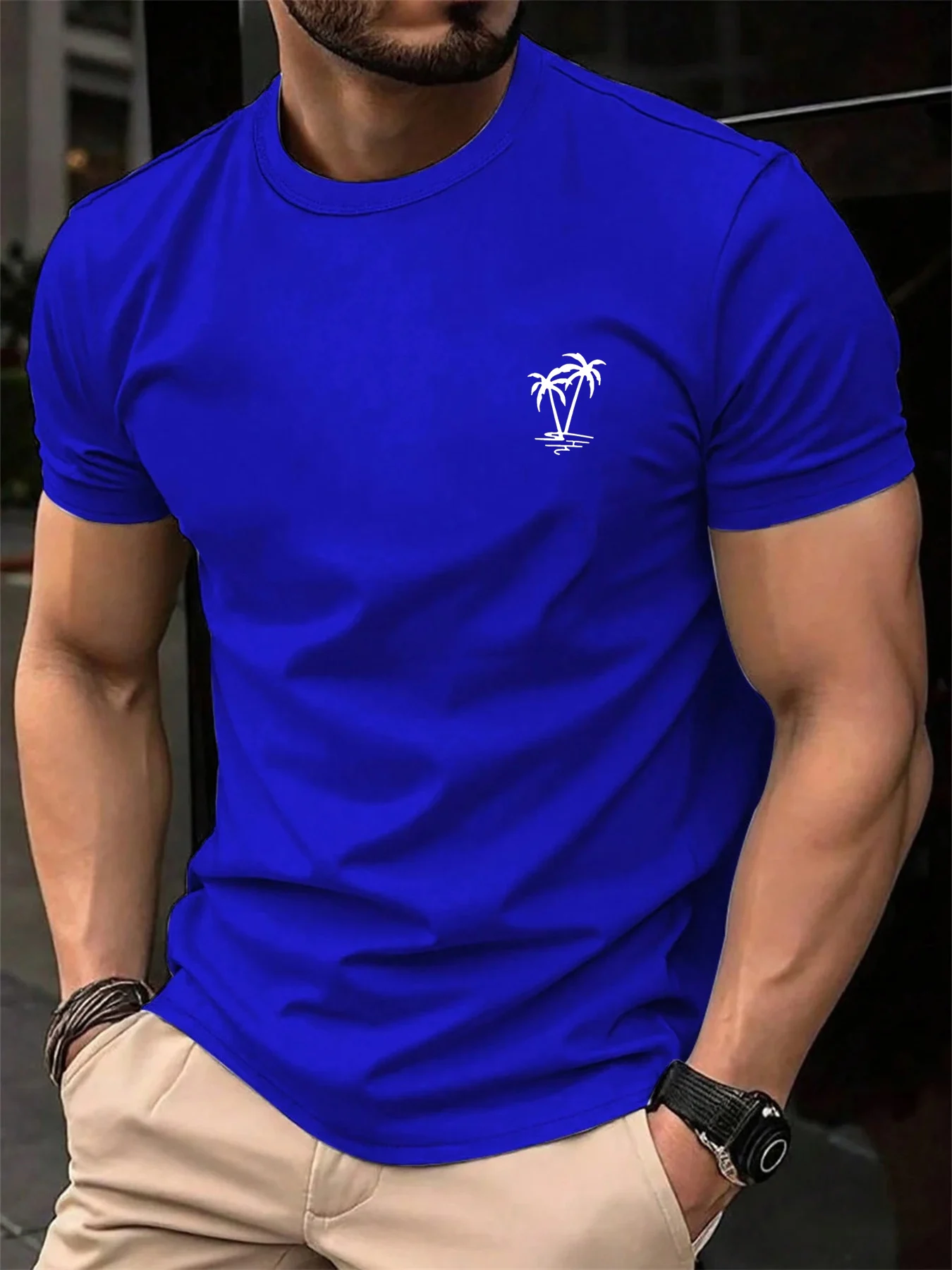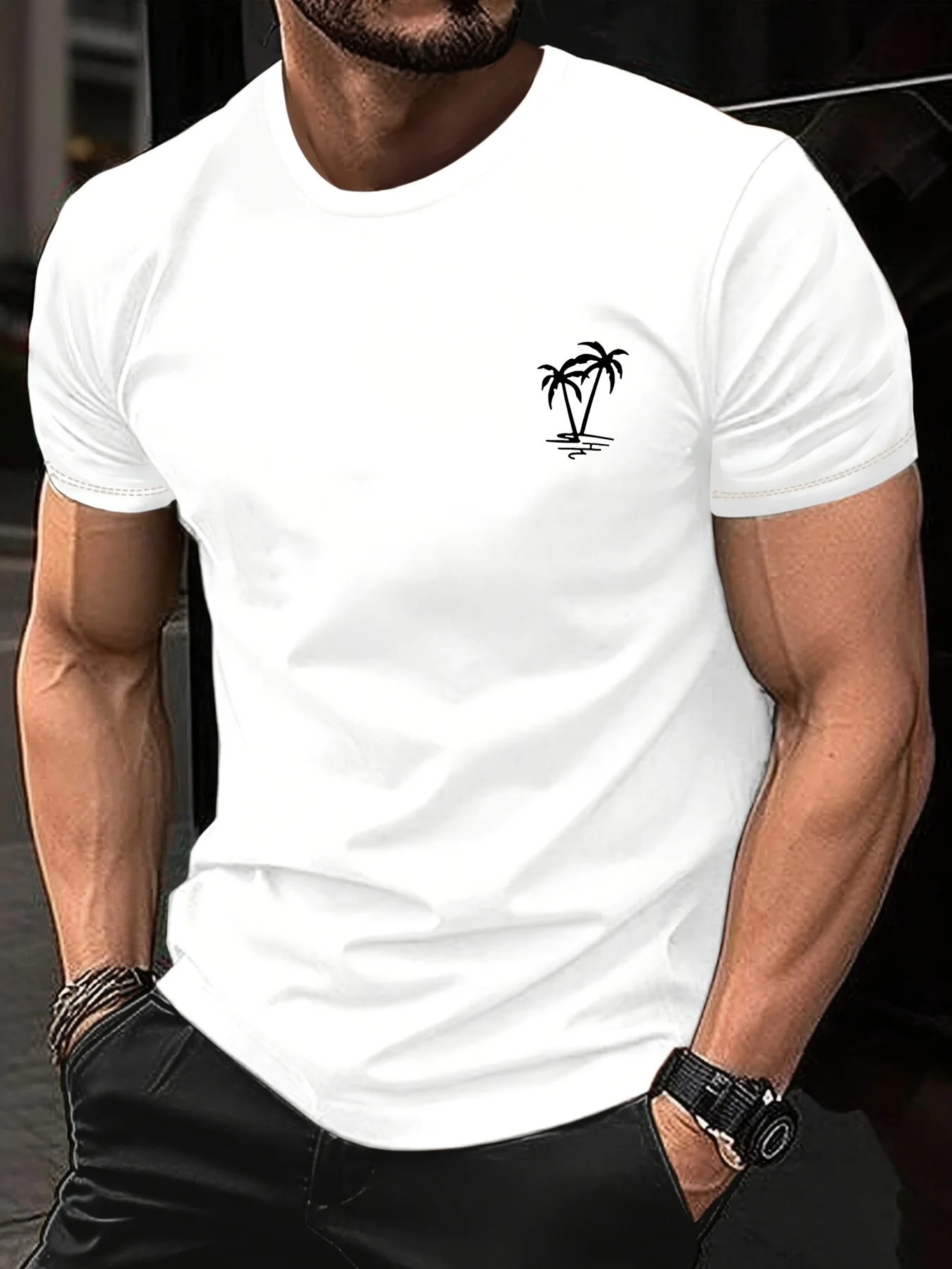 تي شيرت رجالي صيفي 100 قطن عصري كاجوال فضفاض رياضي عصري مطبوع عليه شجرة جوز الهند برقبة دائرية وأكمام قصيرة