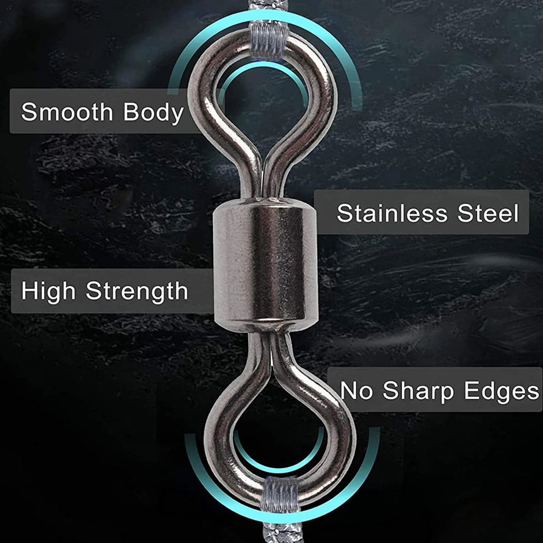 يدور برميل صيد السمك 100 حزمة يدور في المياه المالحة يدور الصيد يعالج الفولاذ المقاوم للصدأ يدور النيكل الأسود