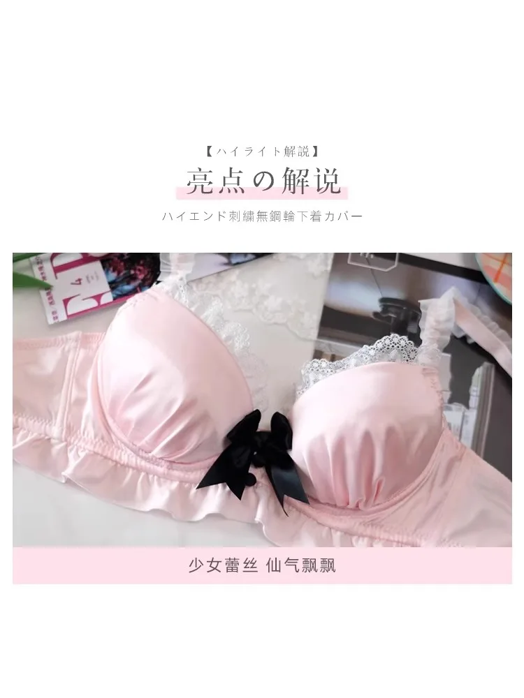 YUQI Kawaii اليابانية لوليتا مجموعة الملابس الداخلية - لطيف القوس الصدرية غطاء وسراويل داخلية للصدر الصغير، نقية مثير فتاة في سن المراهقة سحر XS-S كأس الصدرية